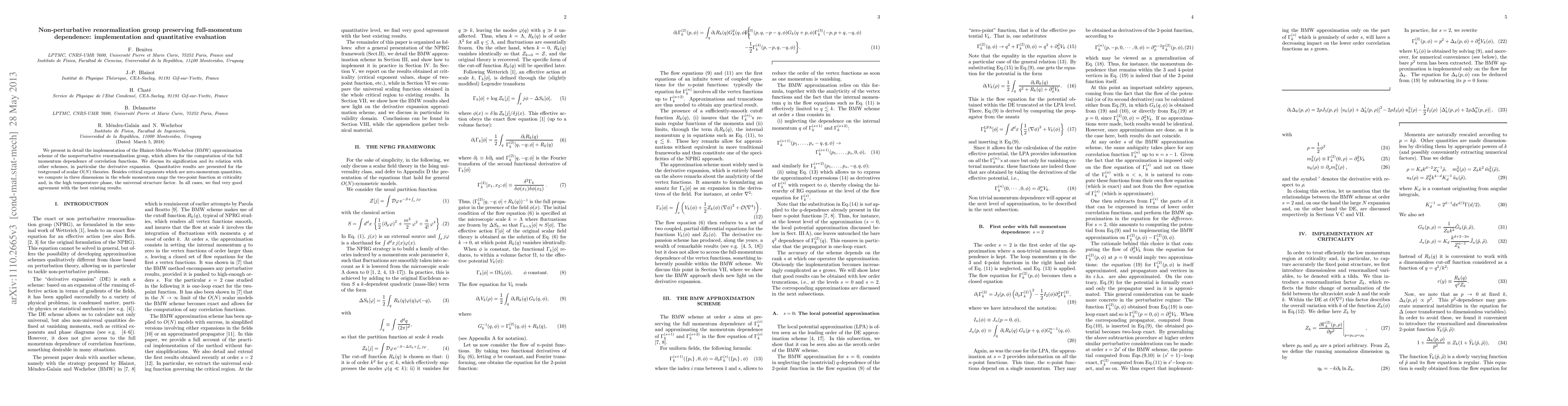 This paper details the implementation of the BMW nonperturbative renormalization group scheme, which computes full momentum dependence of correlation functions. Quantitative evaluations in scalar O(N) theories show excellent agreement with existing results, demonstrating the method's effectiveness.