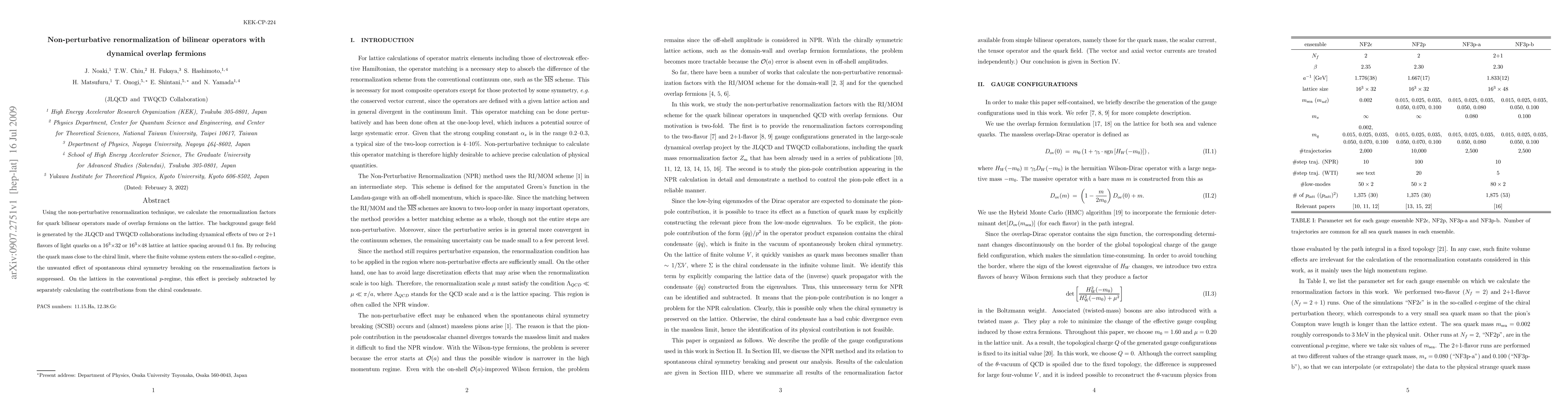 This paper calculates non-perturbative renormalization factors for quark bilinear operators using overlap fermions on lattice QCD, employing dynamical light quarks and reducing quark mass to the chiral limit to minimize chiral symmetry breaking effects. The study focuses on lattices with varying temporal extents and lattice spacings.