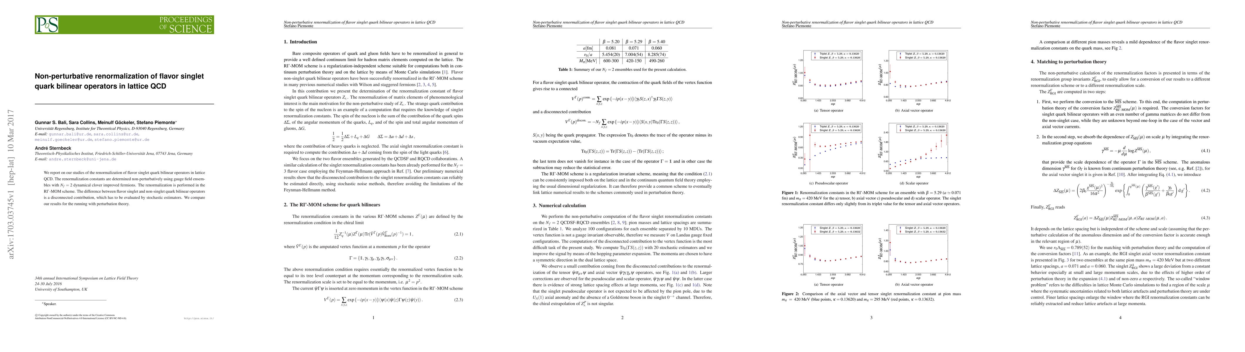 The paper presents a novel approach for non-perturbative renormalization of flavor singlet quark bilinear operators in lattice QCD, using stochastic noise methods to estimate disconnected contributions.