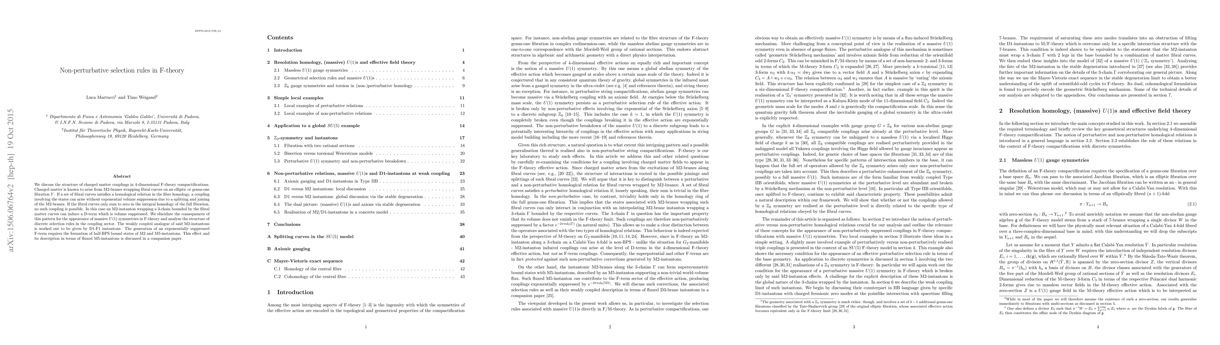 This paper explores non-perturbative selection rules in F-theory compactifications, revealing how charged matter couplings arise from M2-branes wrapping fibral curves without volume suppression under certain homological conditions. It also discusses the implications for massive U(1) symmetries and the generation of suppressed F-terms through bound states of M2 and M5-instantons.