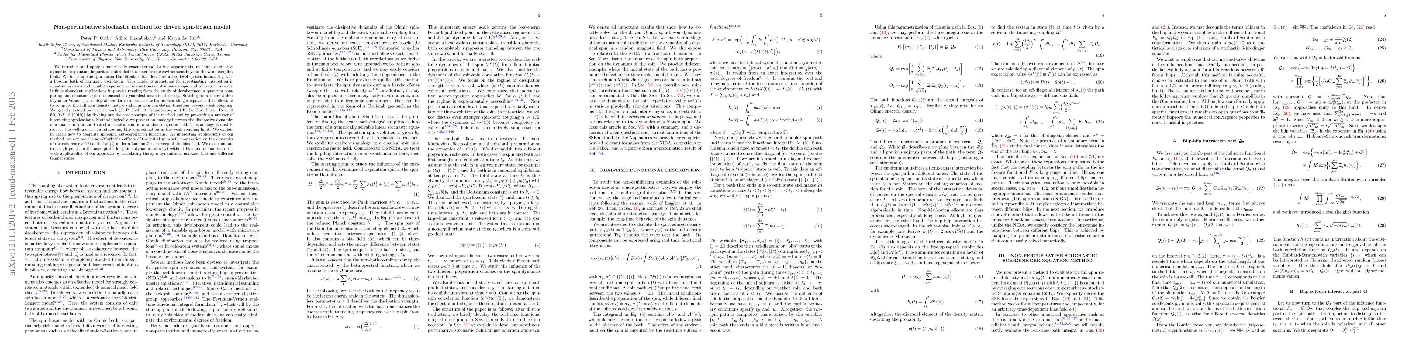 We introduce and apply a numerically exact method for investigating the real-time dissipative dynamics of quantum impurities embedded in a macroscopic environment beyond the weak-coupling limit. We focus on the spin-boson Hamiltonian that describes a two-level system interacting with a bosonic bath of harmonic oscillators. This model is archetypal for investigating dissipation in quantum systems and tunable experimental realizations exist in mesoscopic and cold-atom systems. It finds abundant applications in physics ranging from the study of decoherence in quantum computing and quantum optics to extended dynamical mean-field theory. Starting from the real-time Feynman-Vernon path integral, we derive an exact stochastic Schr\"odinger equation that allows to compute the full spin density matrix and spin-spin correlation functions beyond weak coupling. We greatly extend our earlier work (P. P. Orth, A. Imambekov, and K. Le Hur, Phys. Rev. A {\bf 82}, 032118 (2010)) by fleshing out the core concepts of the method and by presenting a number of interesting applications. Methodologically, we present an analogy between the dissipative dynamics of a quantum spin and that of a classical spin in a random magnetic field. This analogy is used to recover the well-known non-interacting-blip-approximation in the weak-coupling limit. We explain in detail how to compute spin-spin autocorrelation functions. As interesting applications of our method, we explore the non-Markovian effects of the initial spin-bath preparation on the dynamics of the coherence $\sigma^x(t)$ and of $\sigma^z(t)$ under a Landau-Zener sweep of the bias field. We also compute to a high precision the asymptotic long-time dynamics of $\sigma^z(t)$ without bias and demonstrate the wide applicability of our approach by calculating the spin dynamics at non-zero bias and different temperatures.
