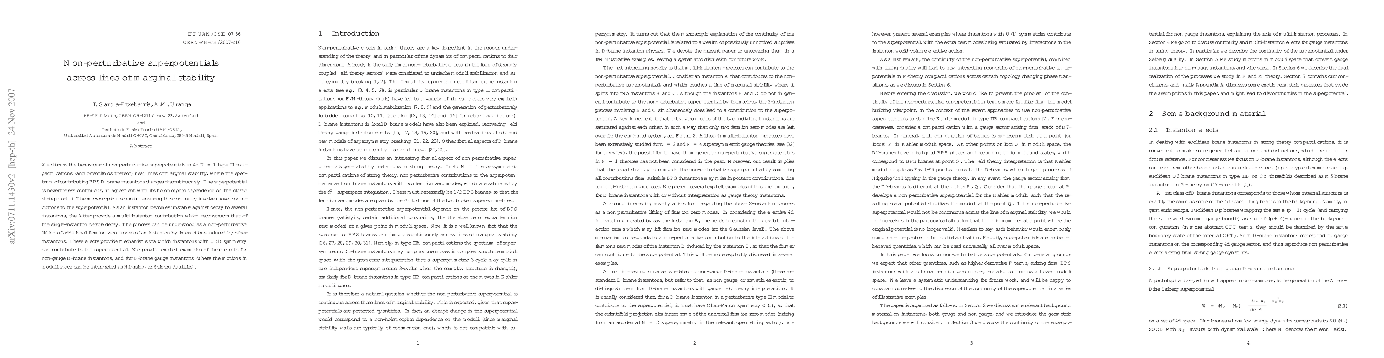We discuss the behaviour of non-perturbative superpotentials in 4d N=1 type II compactifications (and orientifolds thereof) near lines of marginal stability, where the spectrum of contributing BPS D-brane instantons changes discontinuously. The superpotential is nevertheless continuous, in agreement with its holomorphic dependence on the closed string moduli. The microscopic mechanism ensuring this continuity involves novel contributions to the superpotential: As an instanton becomes unstable against decay to several instantons, the latter provide a multi-instanton contribution which reconstructs that of the single-instanton before decay. The process can be understood as a non-perturbative lifting of additional fermion zero modes of an instanton by interactions induced by other instantons. These effects provide mechanisms via which instantons with U(1) symmetry can contribute to the superpotential. We provide explicit examples of these effects for non-gauge D-brane instantons, and for D-brane gauge instantons (where the motions in moduli space can be interpreted as Higgsing, or Seiberg dualities).