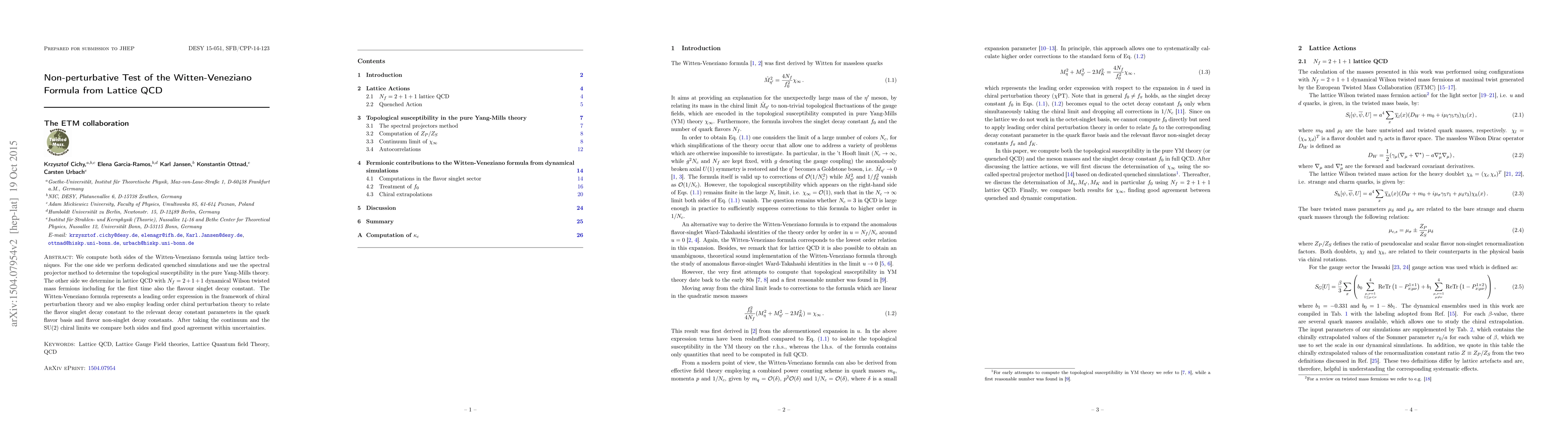 This research paper presents a non-perturbative test of the Witten-Veneziano formula using lattice QCD, where the topological susceptibility is computed through quenched simulations and spectral projector methods, and the flavor singlet decay constant is determined with dynamical fermions. Both sides show good agreement after taking continuum and SU(2) chiral limits.