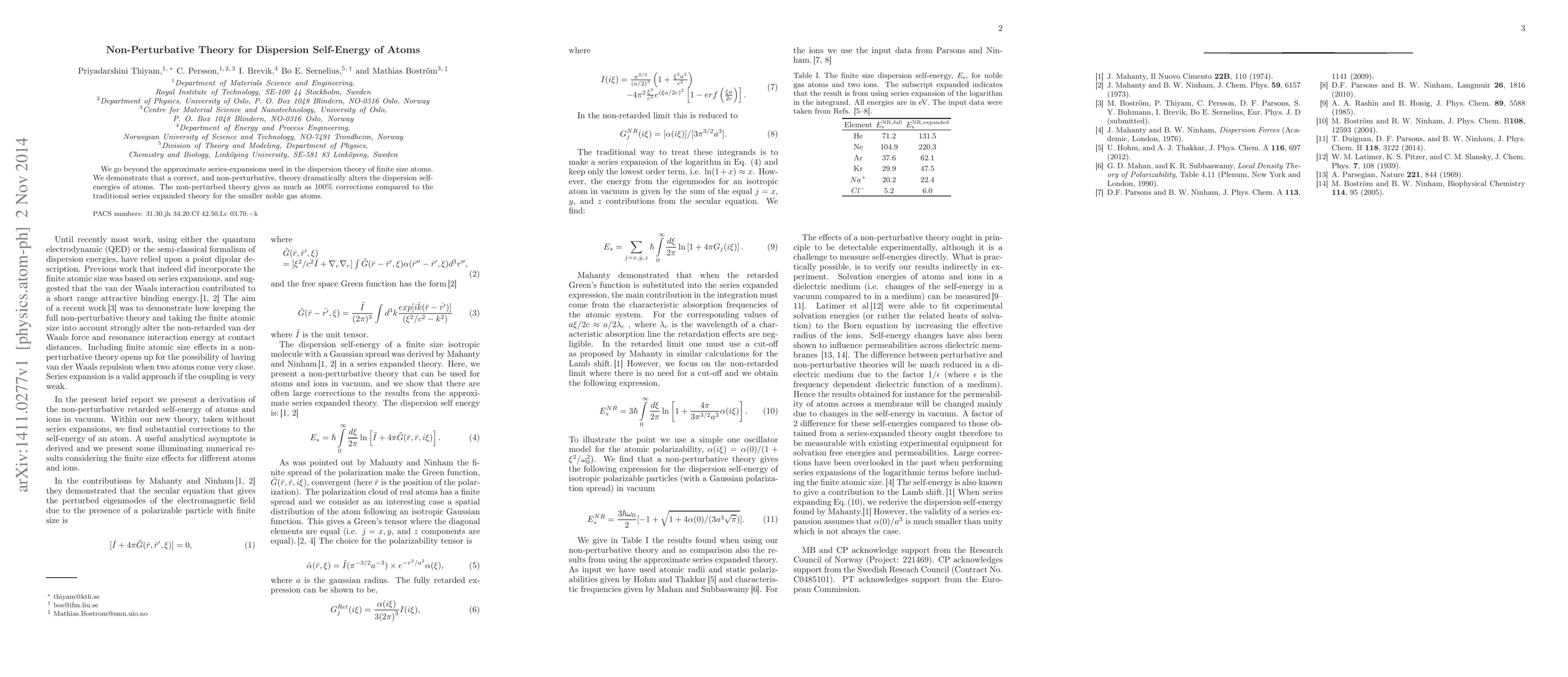 We go beyond the approximate series-expansions used in the dispersion theory of finite size atoms. We demonstrate that a correct, and non-perturbative, theory dramatically alters the dispersion selfenergies of atoms. The non-perturbed theory gives as much as 100% corrections compared to the traditional series expanded theory for the smaller noble gas atoms.