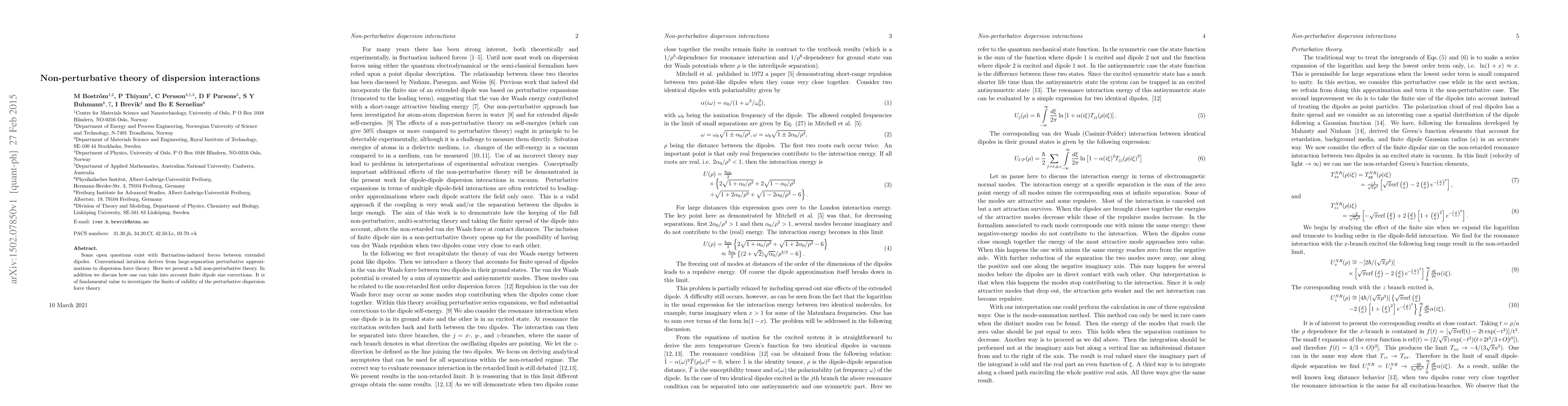 Some open questions exist with fluctuation-induced forces between extended dipoles. Conventional intuition derives from large-separation perturbative approximations to dispersion force theory. Here we present a full non-perturbative theory. In addition we discuss how one can take into account finite dipole size corrections. It is of fundamental value to investigate the limits of validity of the perturbative dispersion force theory.