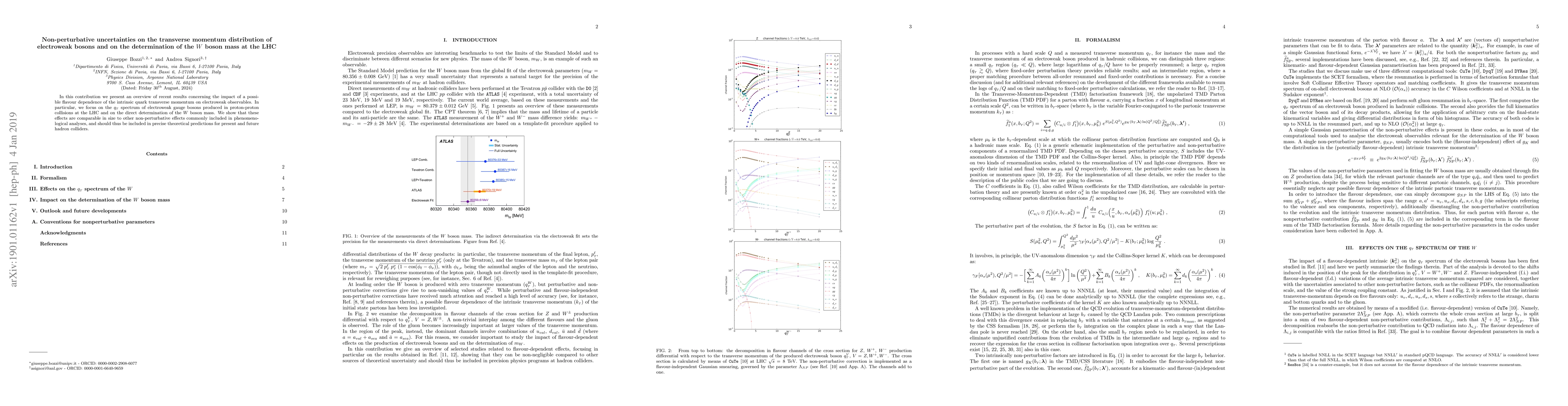 This paper reviews the influence of flavor-dependent intrinsic quark transverse momentum on electroweak observables, emphasizing the $q_T$ spectrum of gauge bosons at the LHC and the $W$ boson mass determination. The study finds that these non-perturbative effects are significant and should be incorporated in precise theoretical predictions for current and future collider experiments.