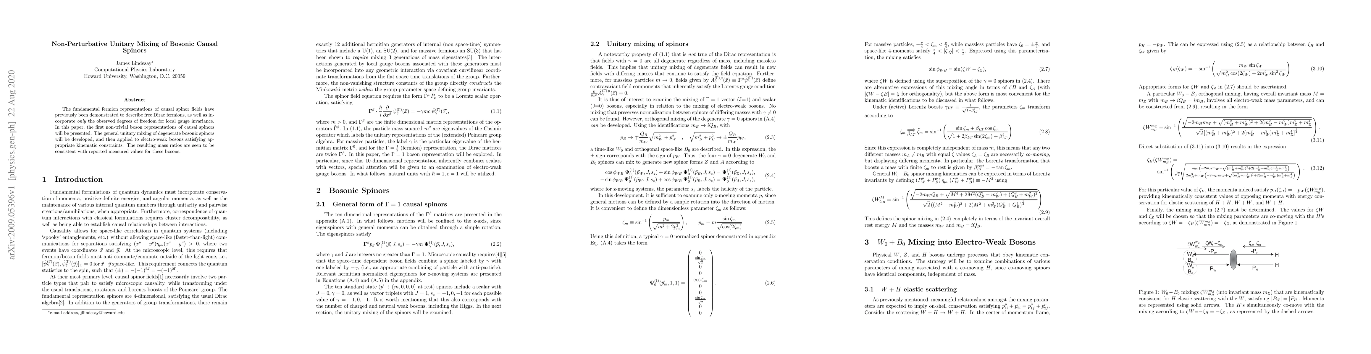 This paper presents non-perturbative unitary mixing of bosonic causal spinors, a new approach to describe the electro-weak bosons, and finds mass ratios consistent with reported measured values.