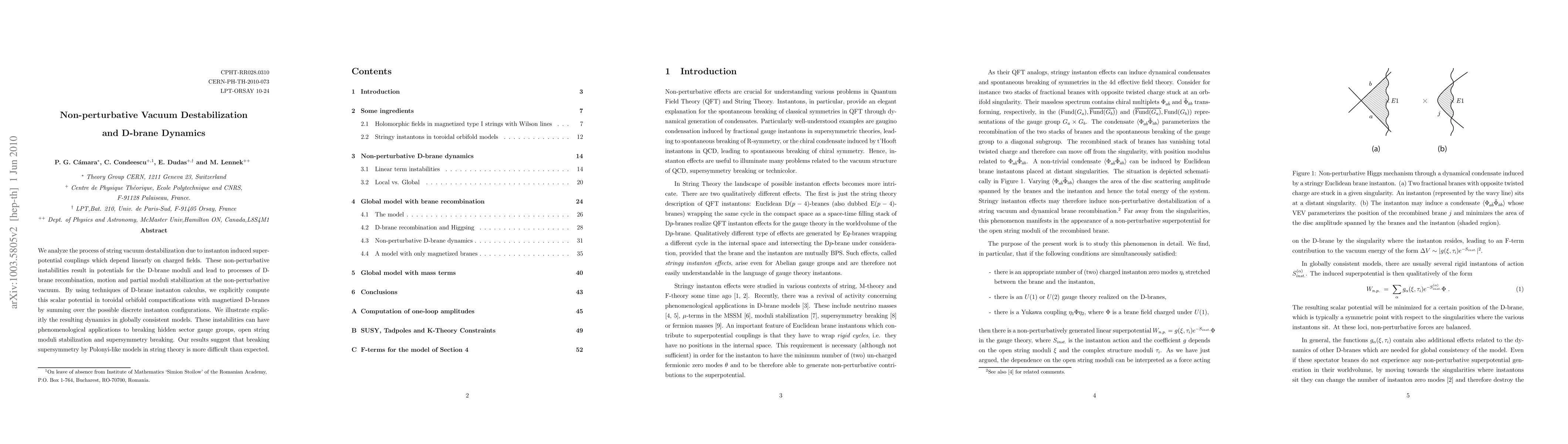 This paper investigates non-perturbative vacuum destabilization in string theory caused by instanton-induced couplings, leading to D-brane dynamics and stabilization. It uses D-brane instanton calculus to compute scalar potentials in toroidal orbifold compactifications, revealing implications for supersymmetry breaking and moduli stabilization.