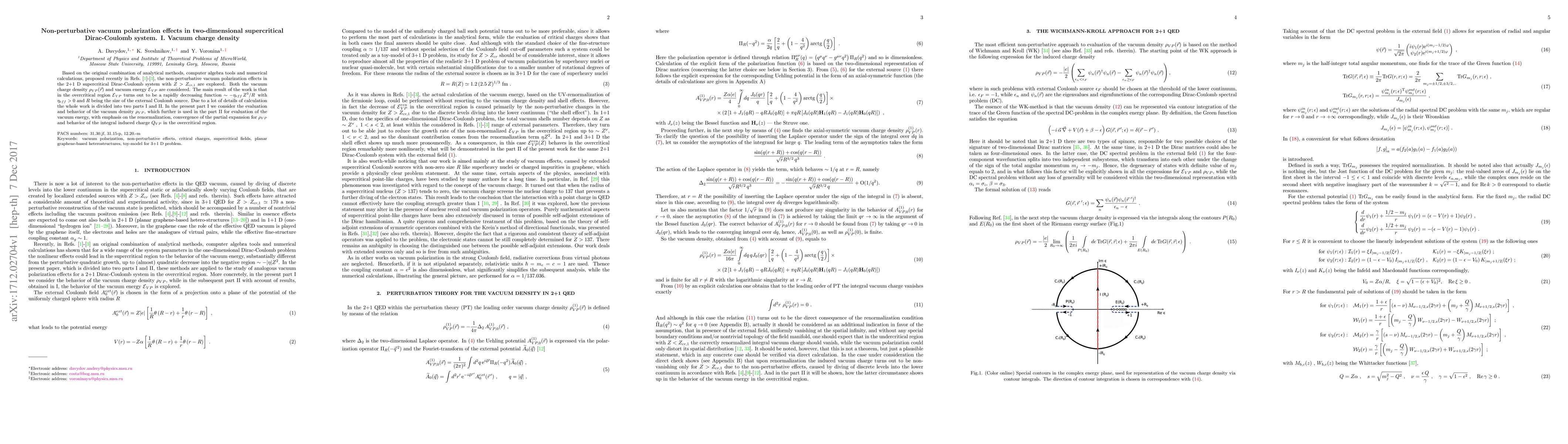 This paper explores non-perturbative vacuum polarization effects in a 2+1 D supercritical Dirac-Coulomb system, focusing on the vacuum charge density $\rho_{VP}(\vec{r})$. The study reveals that the vacuum energy $\mathcal{E}_{VP}$ decreases rapidly in the overcritical region, emphasizing the renormalization and convergence of the partial expansion for $\rho_{VP}$.