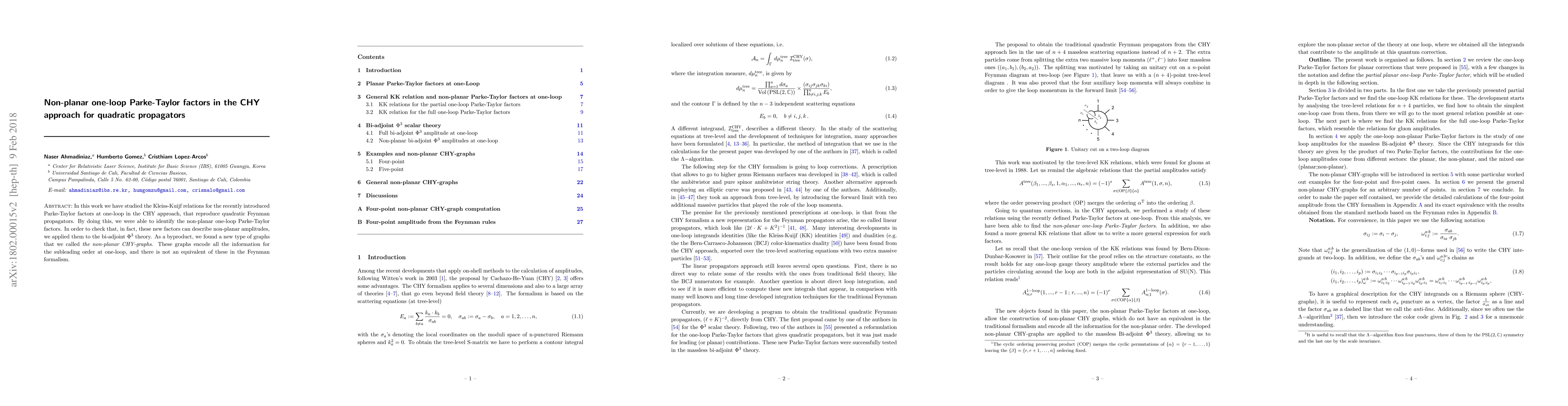 Summary: This paper investigates one-loop Parke-Taylor factors within the CHY framework for quadratic propagators, identifying non-planar factors and applying them to bi-adjoint $\Phi^3$ theory. It discovers new non-planar CHY-graphs, which provide subleading order information at one-loop without a Feynman counterpart.