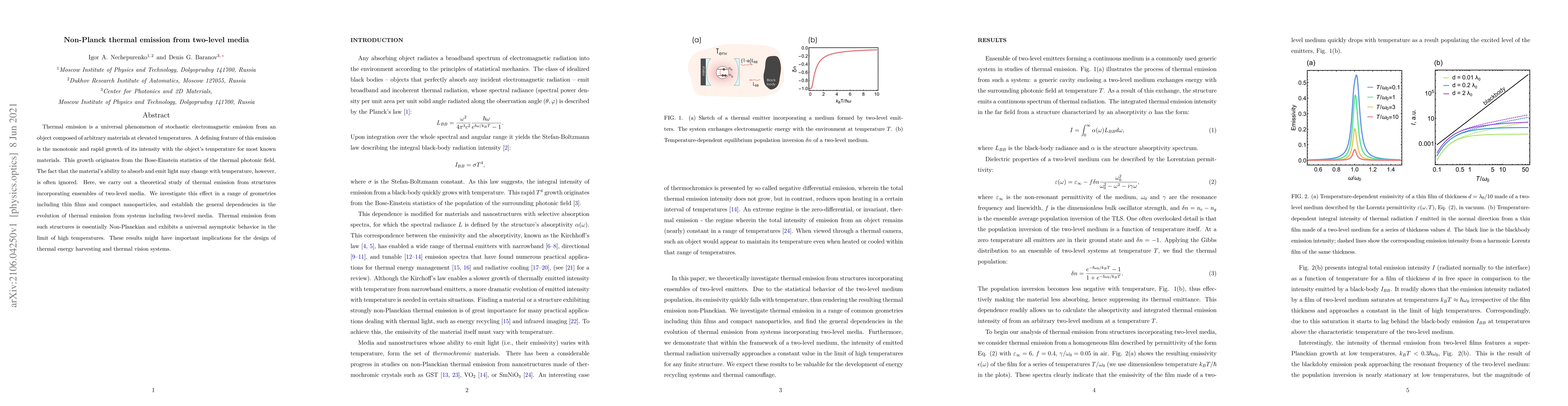 Researchers studied thermal emission from materials with two-level structures, finding that it behaves non-Planckian and follows universal asymptotic behavior at high temperatures, with potential implications for energy harvesting and vision systems.
