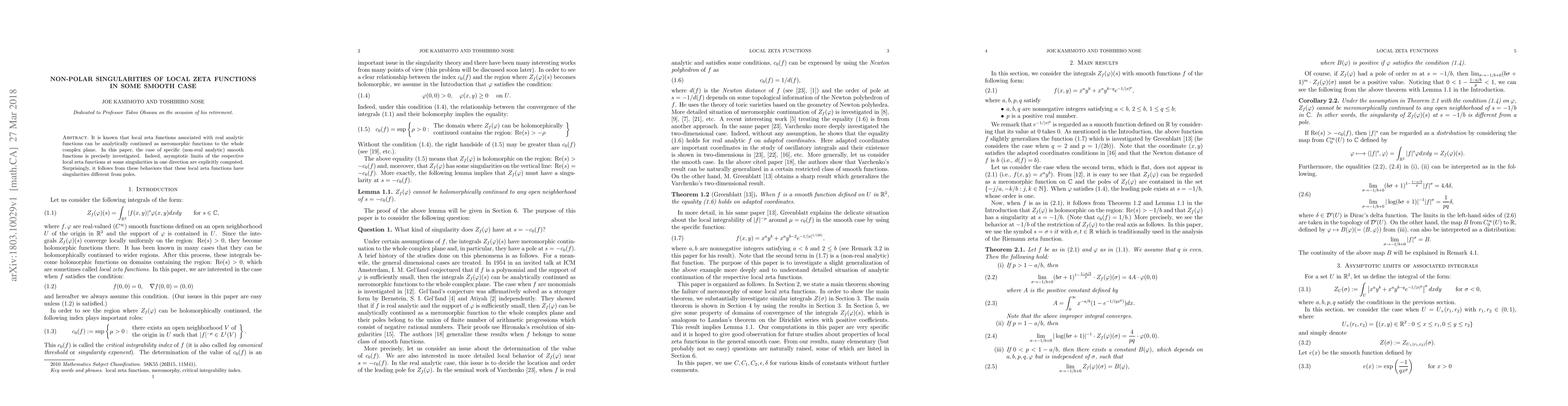 This paper investigates local zeta functions associated with non-real analytic smooth functions, revealing that they exhibit non-polar singularities rather than typical poles when analytically continued to the complex plane. The study computes the asymptotic limits of these functions at specific singularities.
