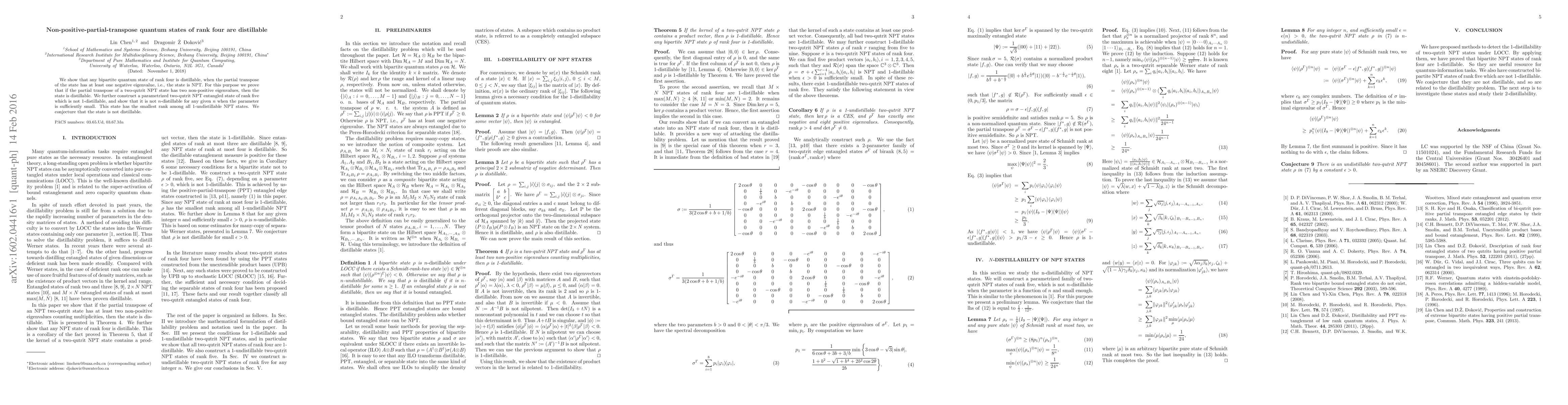 This paper demonstrates that any bipartite quantum state of rank four with a non-positive-partial-transpose (NPT) is distillable. It also constructs a two-qutrit NPT state of rank five that is not distillable, suggesting a potential boundary in distillability.