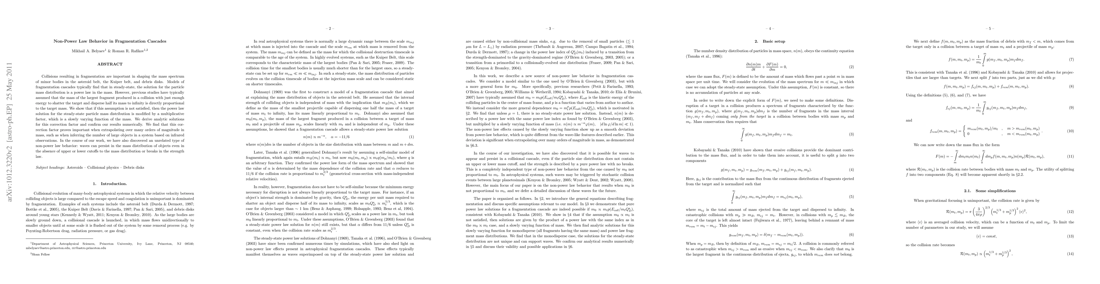 Collisions resulting in fragmentation are important in shaping the mass spectrum of minor bodies in the asteroid belt, the Kuiper belt, and debris disks. Models of fragmentation cascades typically find that in steady-state, the solution for the particle mass distribution is a power law in the mass. However, previous studies have typically assumed that the mass of the largest fragment produced in a collision with just enough energy to shatter the target and disperse half its mass to infinity is directly proportional to the target mass. We show that if this assumption is not satisfied, then the power law solution for the steady-state particle mass distribution is modified by a multiplicative factor, which is a slowly varying function of the mass. We derive analytic solutions for this correction factor and confirm our results numerically. We find that this correction factor proves important when extrapolating over many orders of magnitude in mass, such as when inferring the number of large objects in a system based on infrared observations. In the course of our work, we have also discovered an unrelated type of non-power law behavior: waves can persist in the mass distribution of objects even in the absence of upper or lower cutoffs to the mass distribution or breaks in the strength law.
