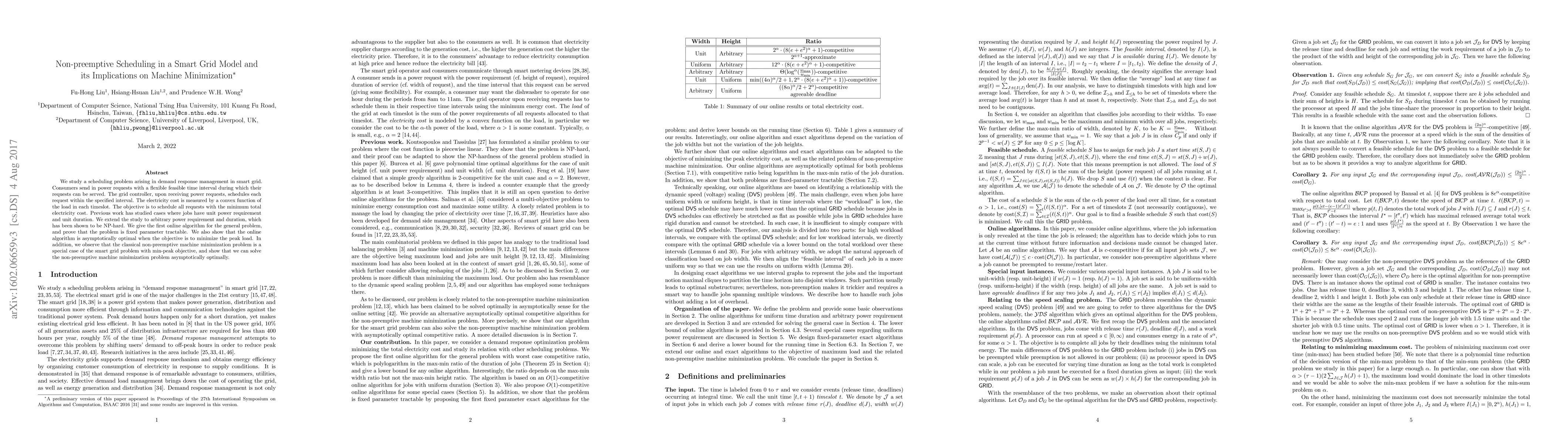 This paper presents an online algorithm for scheduling power requests in smart grid demand response management to minimize total electricity cost, extending previous work to handle arbitrary power requirements and durations. It also demonstrates that the classical non-preemptive machine minimization problem can be solved asymptotically optimally within this framework.