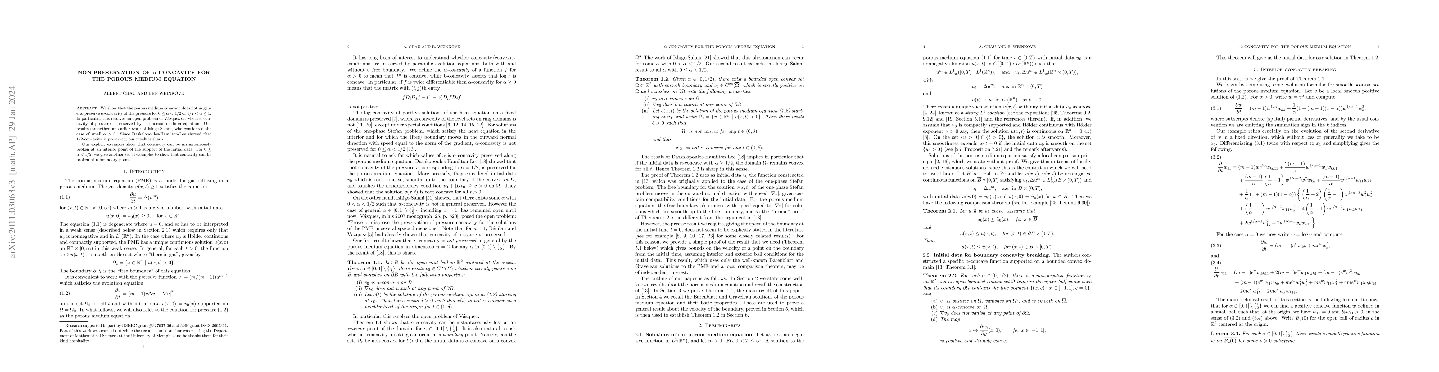 This paper demonstrates that the porous medium equation does not preserve $\alpha$-concavity of pressure for $0\le\alpha<1/2$ or $1/2<\alpha\le 1$, resolving a longstanding question by V\'azquez. It provides explicit examples showing concavity can be broken both at interior and boundary points.