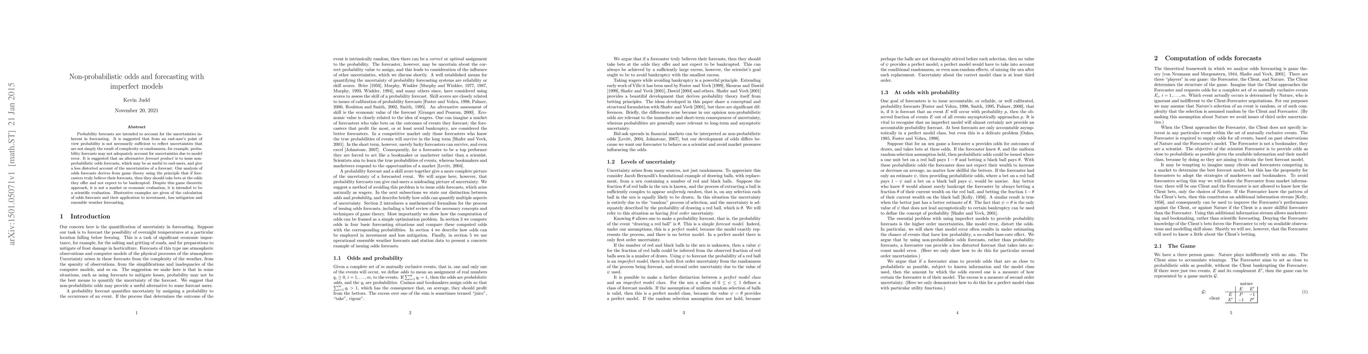 This research paper proposes using non-probabilistic odds forecasts to better reflect uncertainties in forecasting, such as model error, and suggests that these forecasts can be just as useful for end-users as traditional probability forecasts.