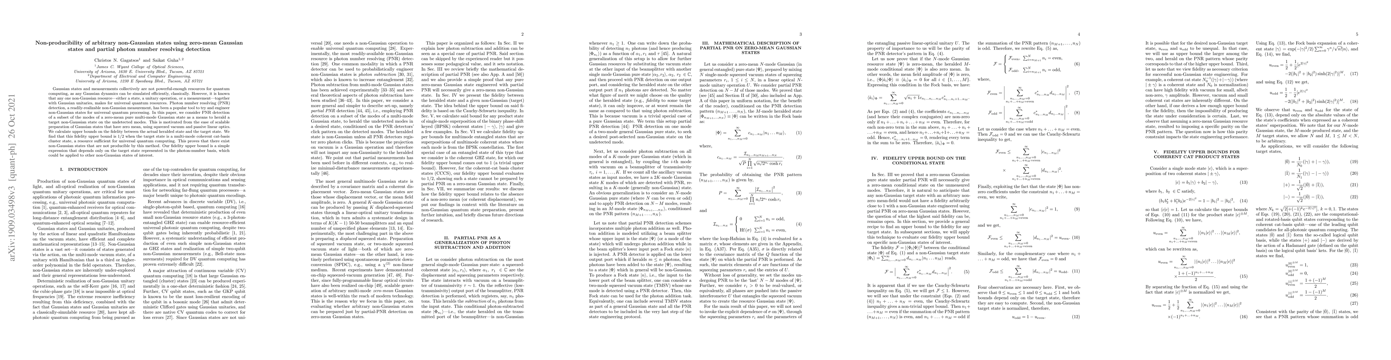 This paper demonstrates that non-Gaussian states, including those necessary for universal quantum computing, cannot be produced from zero-mean Gaussian states using partial photon number resolving detection. The calculated fidelity upper bound of $1/2$ for multi-mode coherent cat-basis cluster states shows the inherent limitations of this method.