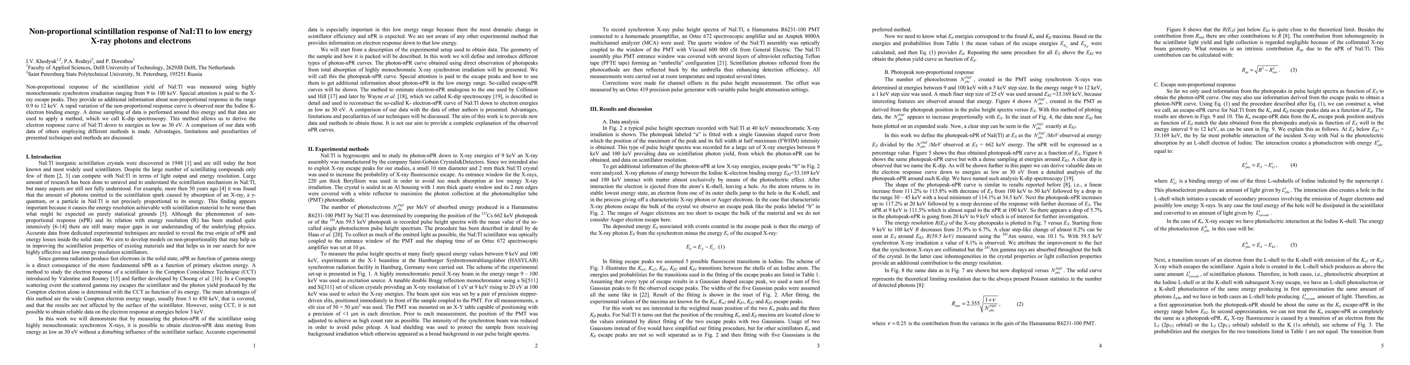 This paper investigates the non-proportional scintillation response of NaI:Tl to low-energy X-rays and electrons, revealing significant variations near the Iodine K-electron binding energy. The study employs K-dip spectroscopy to derive the electron response curve down to 30 eV, comparing results with other methods and discussing their advantages and limitations.