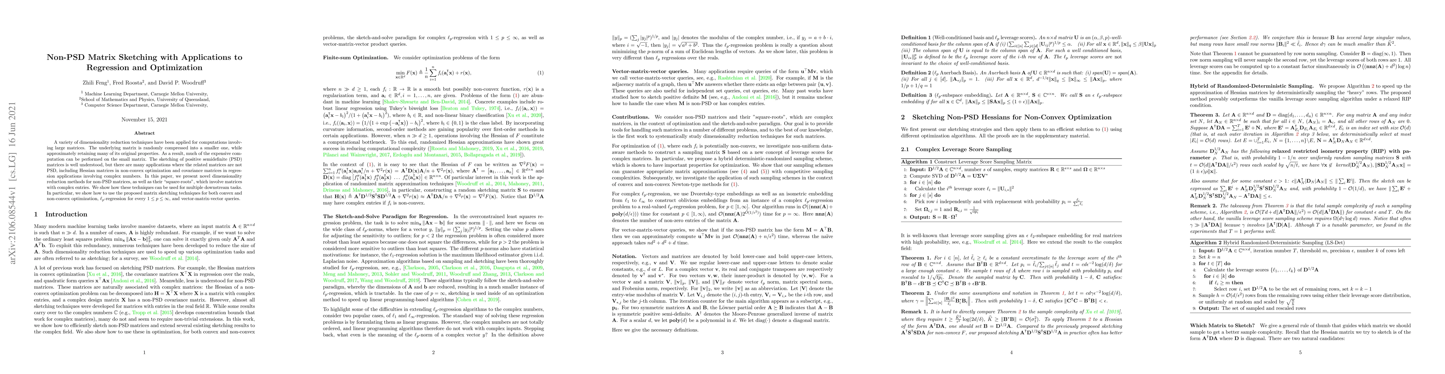 This paper presents novel dimensionality reduction methods for non-PSD matrices, enabling efficient computation in regression and optimization tasks, including convex and non-convex optimization, π-regression, and vector-matrix-vector queries.