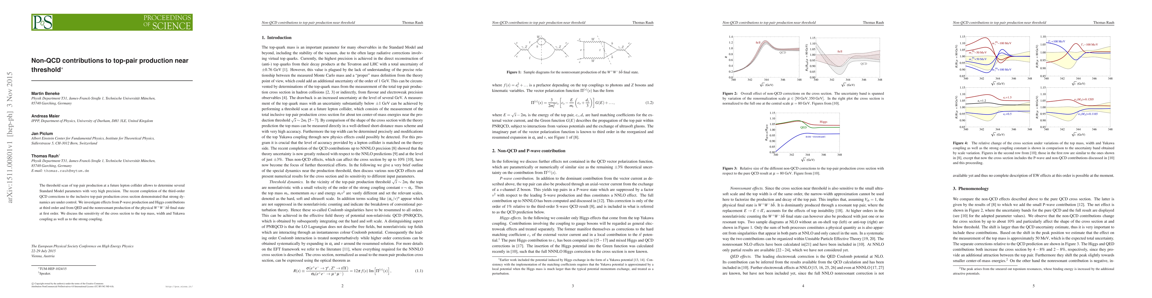 This paper examines non-QCD contributions to top-pair production near threshold at a future lepton collider, focusing on P-wave production, Higgs, QED, and nonresonant $W^+W^-b\bar{b}$ effects, and assesses their impact on determining Standard Model parameters. The study highlights the sensitivity of the cross section to top mass, width, Yukawa coupling, and strong coupling.