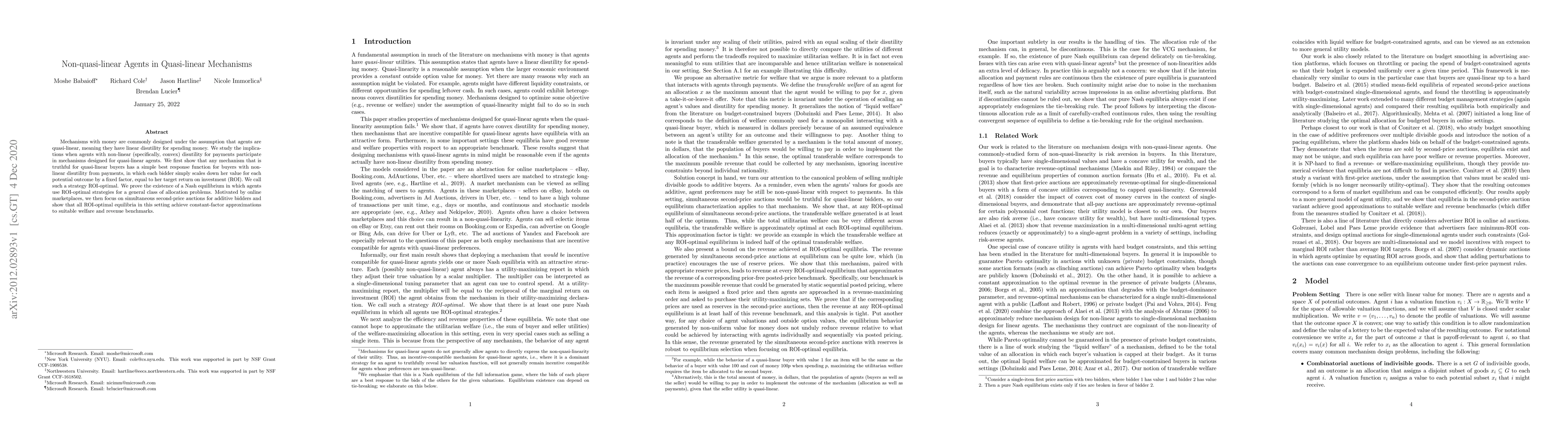 The paper studies the implications when agents with non-linear disutility for payments participate in mechanisms designed for quasi-linear agents, focusing on simultaneous second-price auctions for additive bidders.