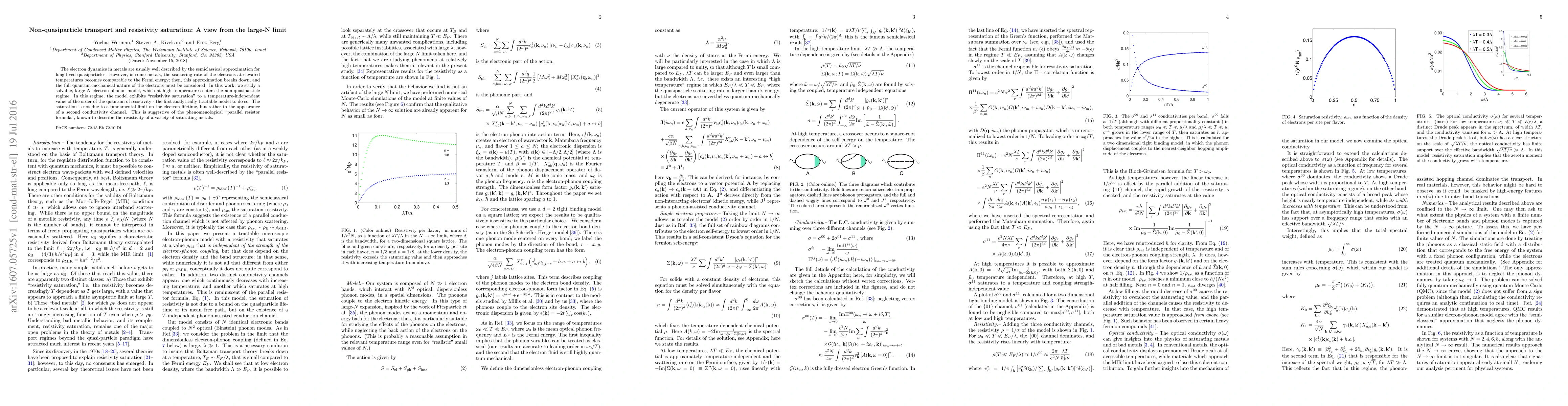 The electron dynamics in metals are usually well described by the semiclassical approximation for long-lived quasiparticles. However, in some metals, the scattering rate of the electrons at elevated temperatures becomes comparable to the Fermi energy; then, this approximation breaks down, and the full quantum-mechanical nature of the electrons must be considered. In this work, we study a solvable, large-$N$ electron-phonon model, which at high temperatures enters the non-quasiparticle regime. In this regime, the model exhibits "resistivity saturation" to a temperature-independent value of the order of the quantum of resistivity - the first analytically tractable model to do so. The saturation is not due to a fundamental limit on the electron lifetime, but rather to the appearance of a second conductivity channel. This is suggestive of the phenomenological "parallel resistor formula", known to describe the resistivity of a variety of saturating metals.