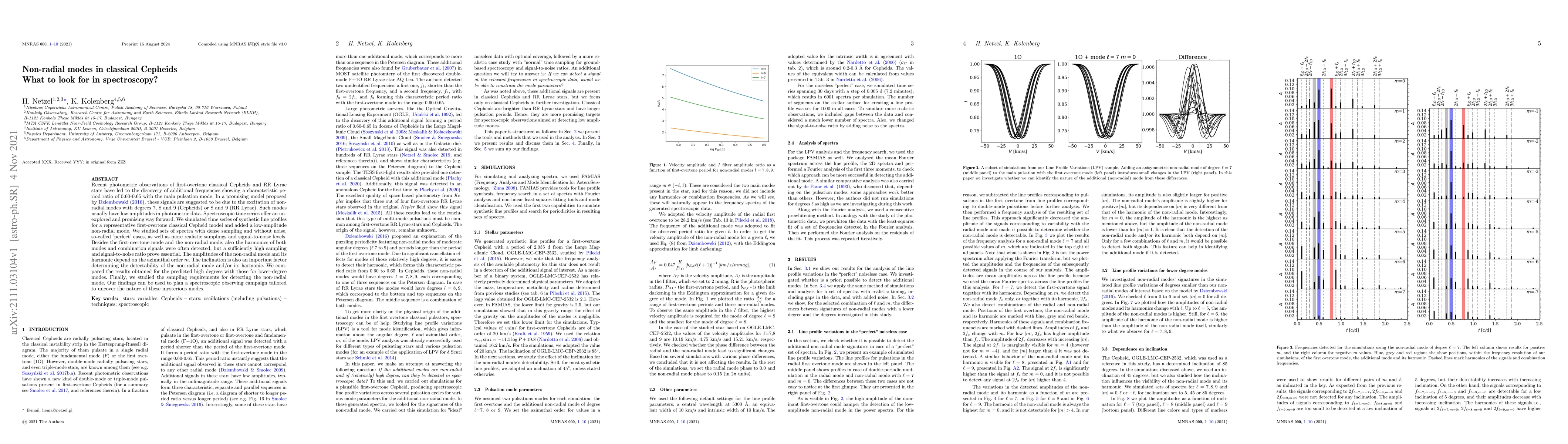 Recent photometric observations of first-overtone classical Cepheids and RR Lyrae stars have led to the discovery of additional frequencies showing a characteristic period ratio of 0.60-0.65 with the main pulsation mode. In a promising model proposed by Dziembowski (2016), these signals are suggested to be due to the excitation of non-radial modes with degrees 7, 8 and 9 (Cepheids) or 8 and 9 (RR Lyrae). Such modes usually have low amplitudes in photometric data. Spectroscopic time series offer an unexplored and promising way forward. We simulated time series of synthetic line profiles for a representative first-overtone classical Cepheid model and added a low-amplitude non-radial mode. We studied sets of spectra with dense sampling and without noise, so-called 'perfect' cases, as well as more realistic samplings and signal-to-noise levels. Besides the first-overtone mode and the non-radial mode, also the harmonics of both modes and combination signals were often detected, but a sufficiently high sampling and signal-to-noise ratio prove essential. The amplitudes of the non-radial mode and its harmonic depend on the azimuthal order $m$. The inclination is also an important factor determining the detectability of the non-radial mode and/or its harmonic. We compared the results obtained for the predicted high degrees with those for lower-degree modes. Finally, we studied the sampling requirements for detecting the non-radial mode. Our findings can be used to plan a spectroscopic observing campaign tailored to uncover the nature of these mysterious modes.