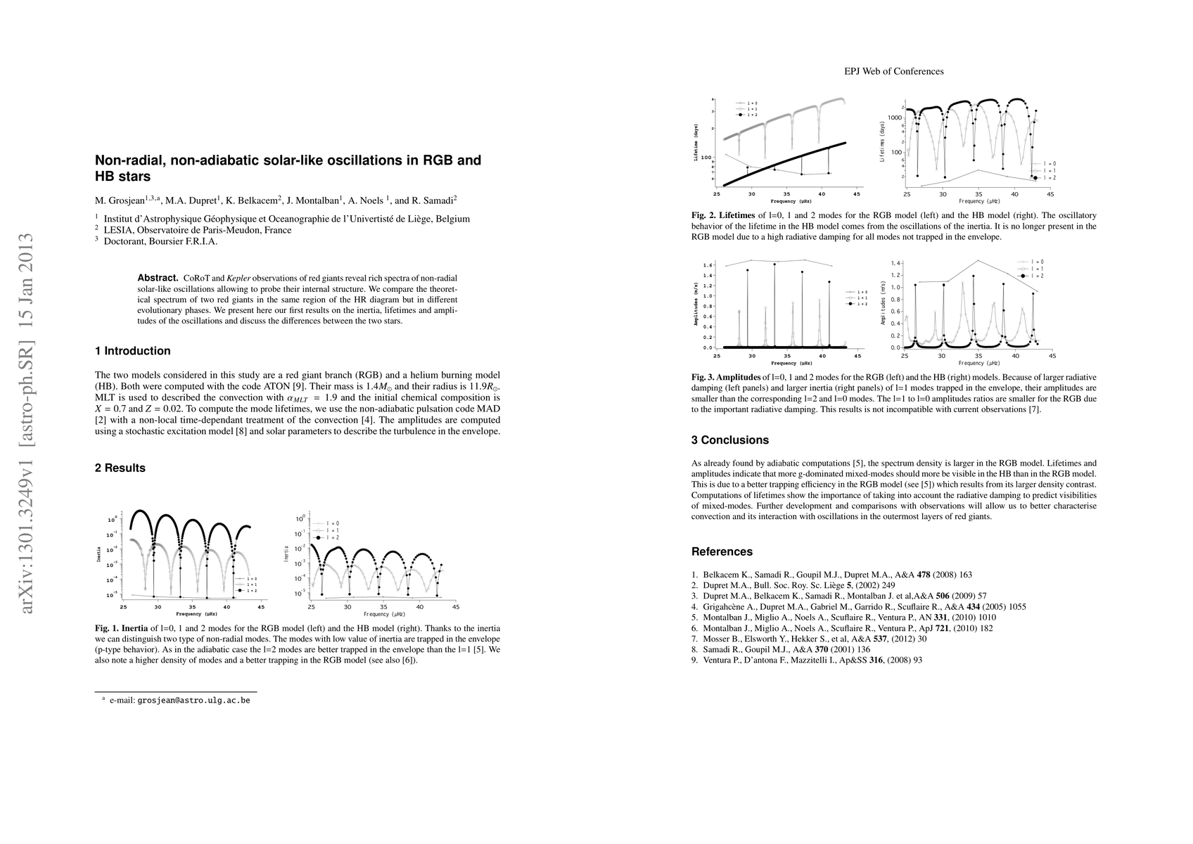 This paper analyzes non-radial solar-like oscillations in red giants observed by CoRoT and Kepler, revealing detailed internal structure insights. Initial findings compare two stars in different evolutionary phases, highlighting differences in inertia, oscillation lifetimes, and amplitudes.