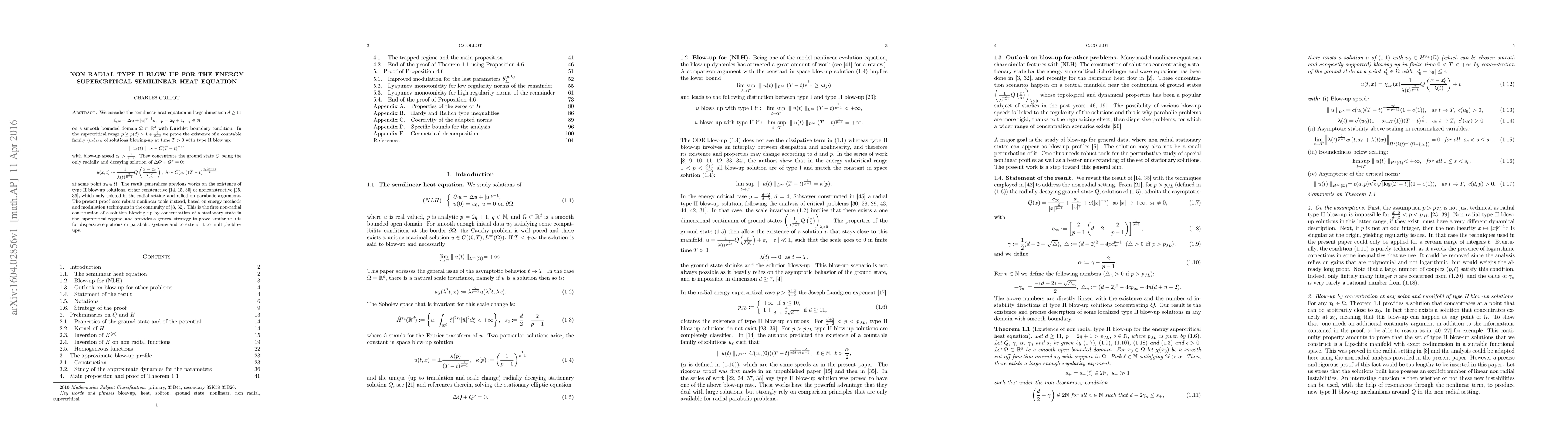 This paper investigates non-radial type II blow-up solutions for the energy supercritical semilinear heat equation in dimensions $d \geq 11$, proving their existence in the supercritical range and beyond. It introduces a non-radial blow-up concentration around a non-radial ground state solution, expanding on previous radial-only results and offering a general strategy for similar analyses in dispersive and parabolic systems.
