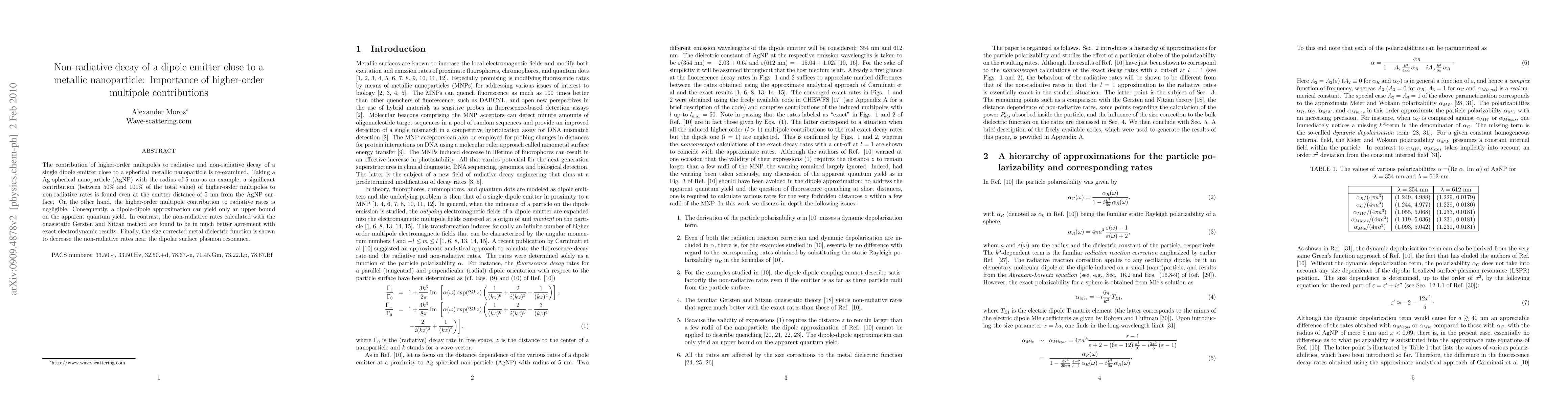 Research shows that higher-order multipoles significantly affect non-radiative decay of a dipole emitter near a metallic nanoparticle, with some contributions being as high as 101%.
