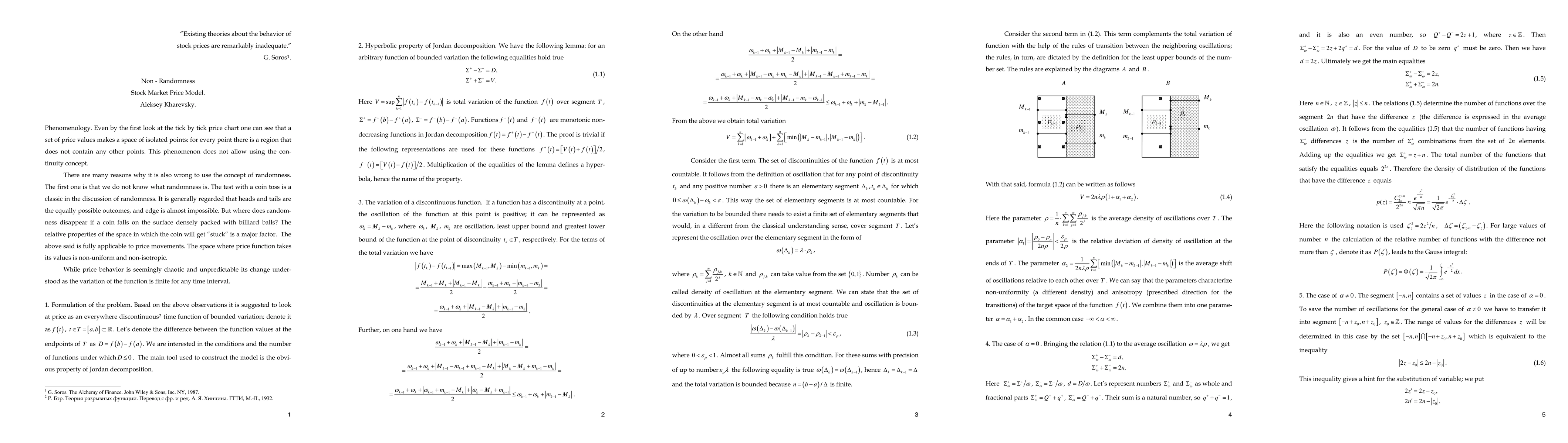 Summary: The paper proposes a novel model for stock market price analysis, treating price as an everywhere discontinuous function of time with bounded variation, challenging traditional random walk theories.