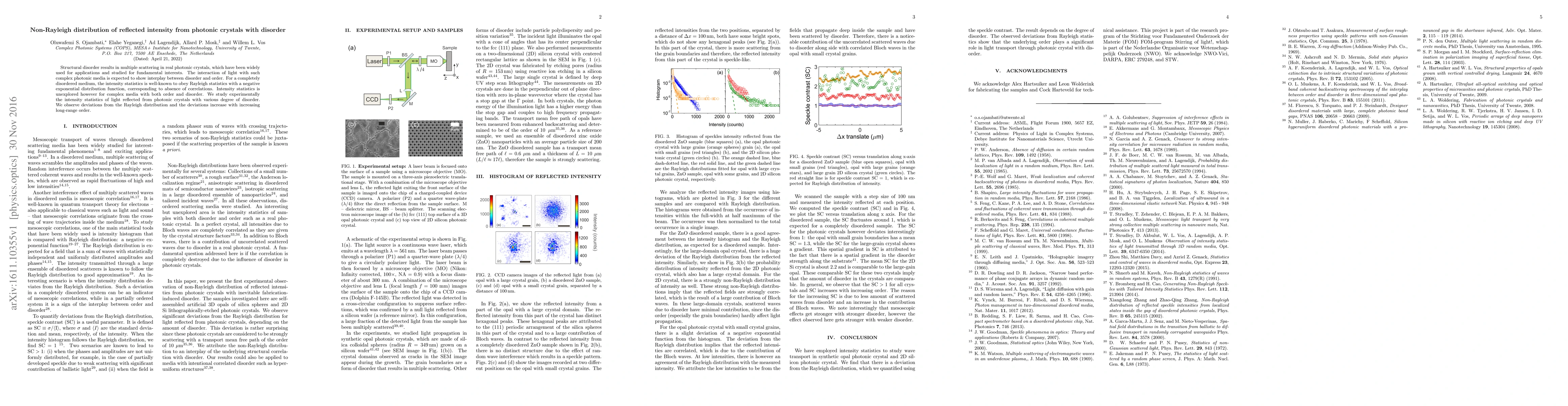 The study explores the intensity statistics of light reflected from photonic crystals with varying levels of disorder, revealing non-Rayleigh distribution patterns that deviate increasingly with higher long-range order. These findings highlight the complex interplay between disorder and order in photonic media.