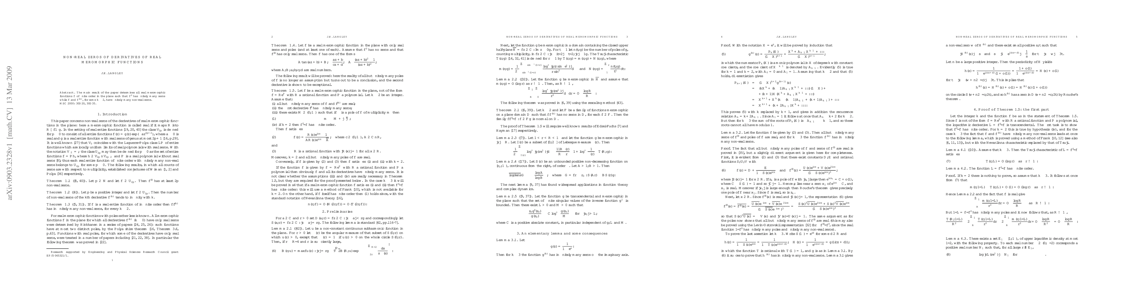 Summary: The paper identifies real meromorphic functions of finite order where the first derivative has a limited number of zeros, while the function and at least one higher derivative possess a finite count of non-real zeros. This classification provides insight into the complex behavior of such functions.