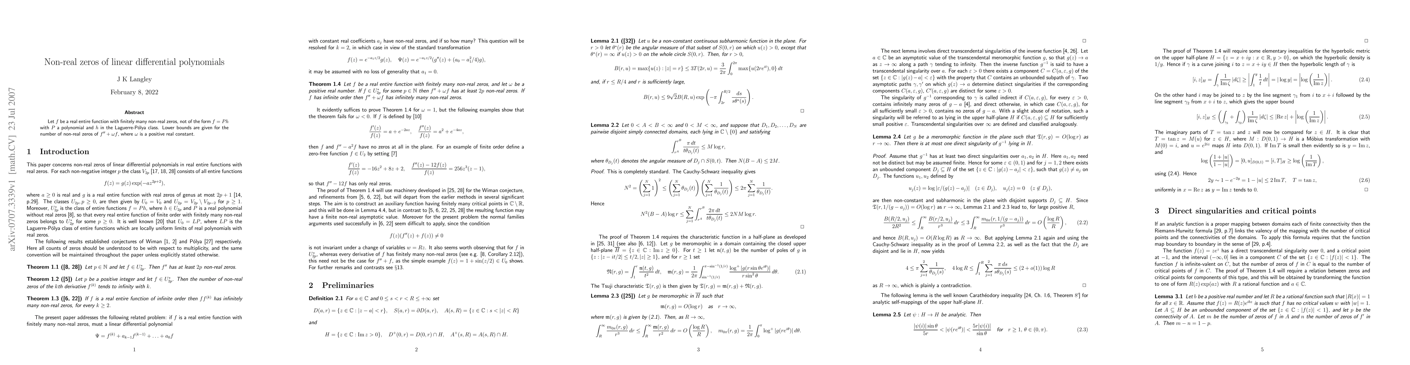 The paper establishes lower bounds for non-real zeros of a second-order linear differential polynomial with constant coefficients in real entire functions, showing a relationship between the zeros and the function's properties.