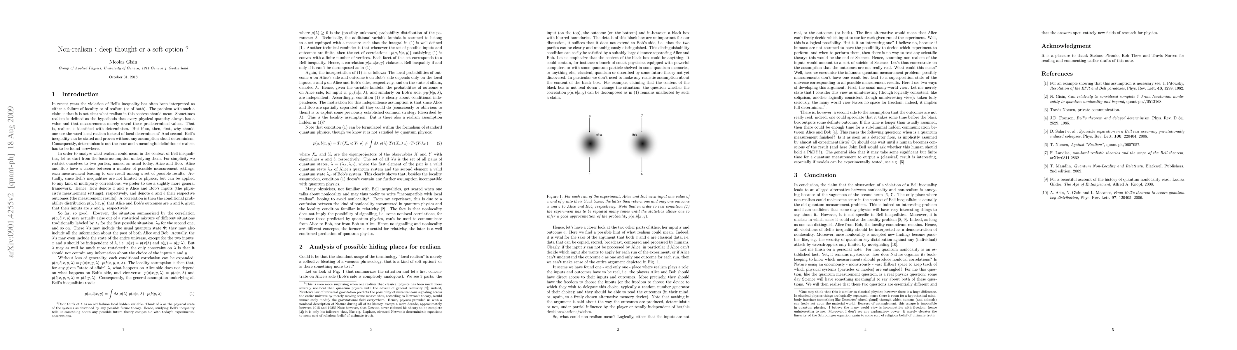 The claim that the observation of a violation of a Bell inequality leads to an alleged alternative between nonlocality and non-realism is annoying because of the vagueness of the second term.