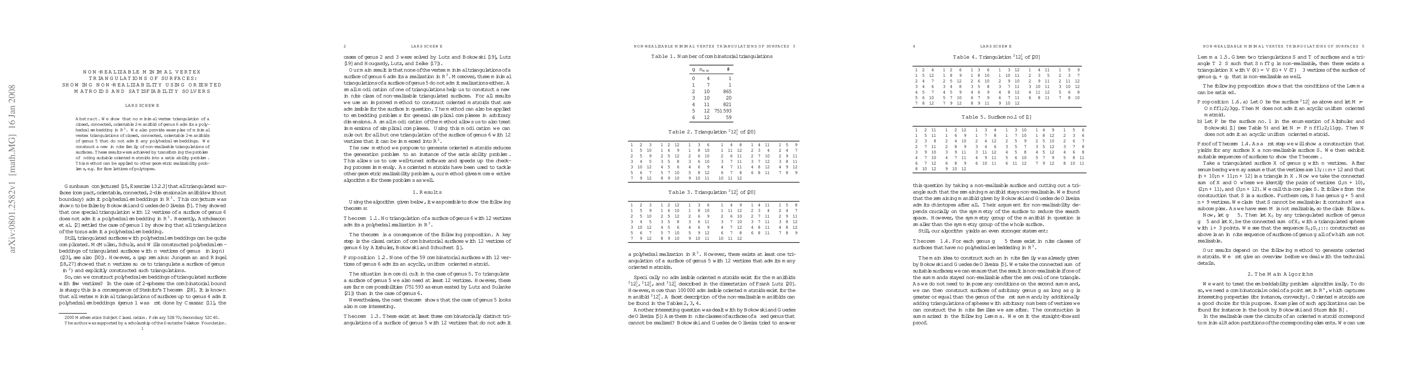 This paper demonstrates that minimal vertex triangulations of closed, connected, orientable 2-manifolds of genus 6 and certain genus 5 surfaces cannot be embedded polyhedrally in R^3. The authors use oriented matroids and satisfiability solvers to show non-realizability, establishing a new infinite family of such non-realizable triangulations.