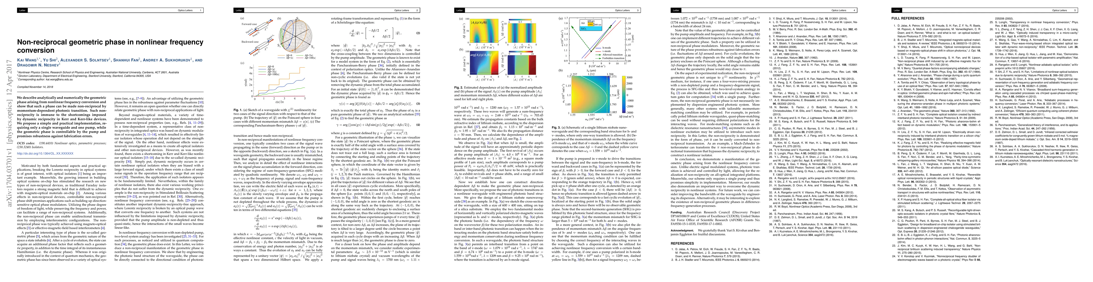 This paper investigates the non-reciprocal geometric phase in nonlinear frequency conversion, demonstrating its immunity to dynamic reciprocity issues in Kerr devices. A practical implementation using a single waveguide and one pump is proposed, offering robustness against fabrication errors.