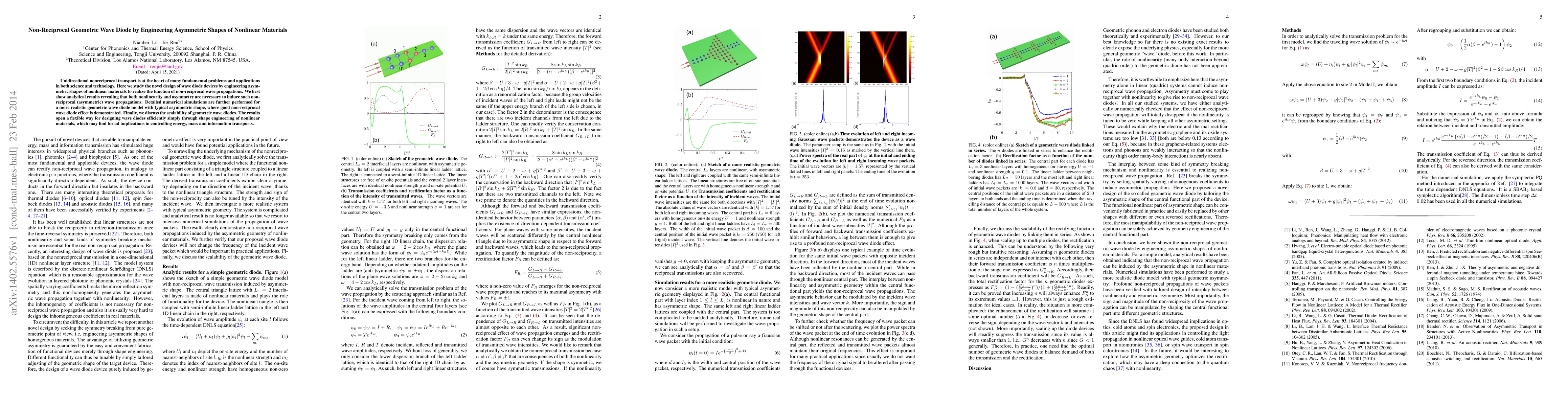 This paper presents a novel design for wave diodes using asymmetric shapes of nonlinear materials to achieve unidirectional wave propagation. Analytical and numerical results demonstrate that both nonlinearity and asymmetry are essential for non-reciprocal wave transport, with potential applications in controlling energy, mass, and information flows.