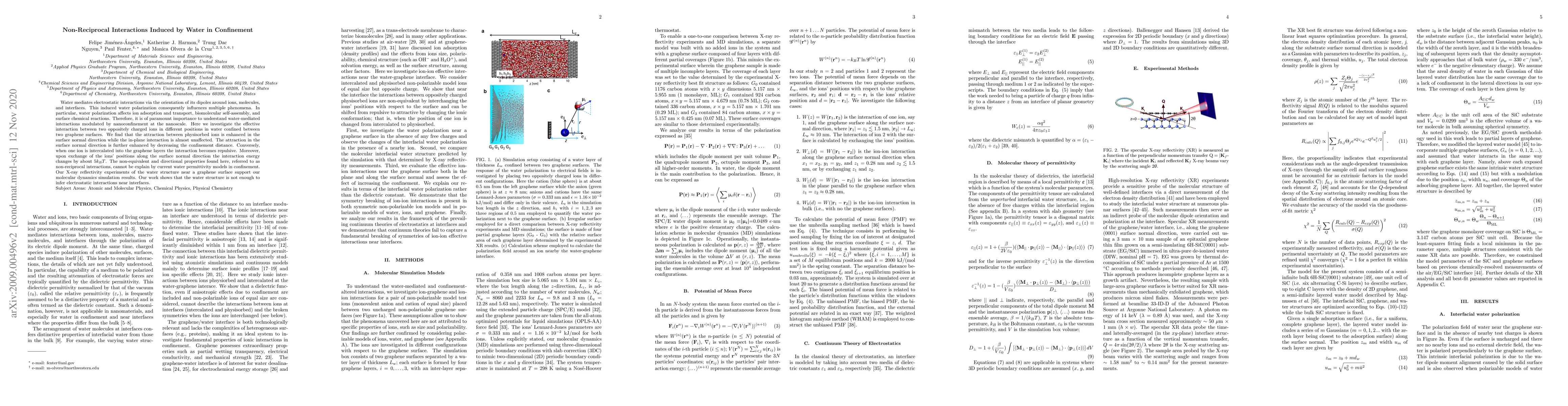 Research reveals that water in confinement near a graphene surface induces non-reciprocal interactions between oppositely charged ions, changing their interaction energy when positions are exchanged.