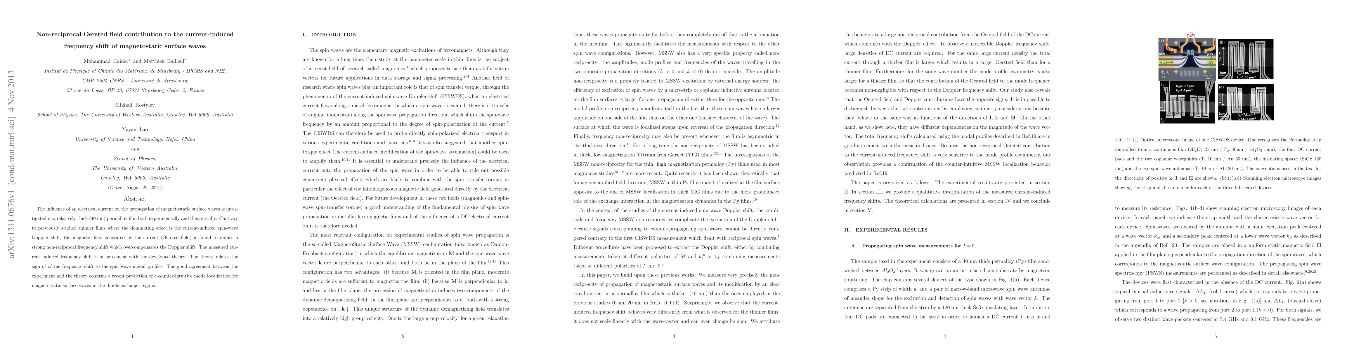 The influence of an electrical current on the propagation of magnetostatic surface waves is investigated in a relatively thick (40 nm) permalloy film both experimentally and theoretically. Contrary to previously studied thinner films where the dominating effect is the current-induced spin-wave Doppler shift, the magnetic field generated by the current (Oersted field) is found to induce a strong non-reciprocal frequency shift which overcompensates the Doppler shift. The measured current induced frequency shift is in agreement with the developed theory. The theory relates the sign of of the frequency shift to the spin wave modal profiles. The good agreement between the experiment and the theory confirms a recent prediction of a counter-intuitive mode localization for magnetostatic surface waves in the dipole-exchange regime.