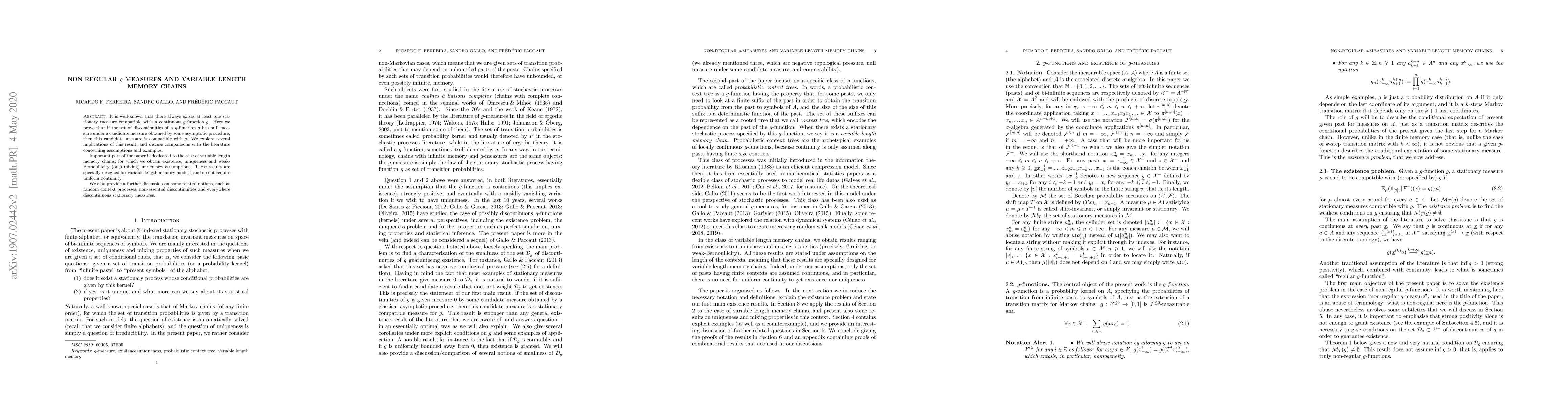 It is well-known that there always exists at least one stationary measure compatible with a continuous g-function g. Here we prove that if the set of discontinuities of the g-function g has null measure under a candidate measure obtained by some asymptotic procedure, then this candidate measure is compatible with g. We explore several implications of this result, and discuss comparisons with the literature concerning assumptions and examples. Important part of the paper is concerned with the case of variable length memory chains, for which we obtain existence, uniqueness and weak-Bernoullicity (or $\beta$-mixing) under new assumptions. These results are specially designed for variable length memory models, and do not require vanishing uniform variation. We also provide a further discussion on some related notions, such as random context processes, non-essential discontinuities, and finally an example of everywhere discontinuous stationary measure.