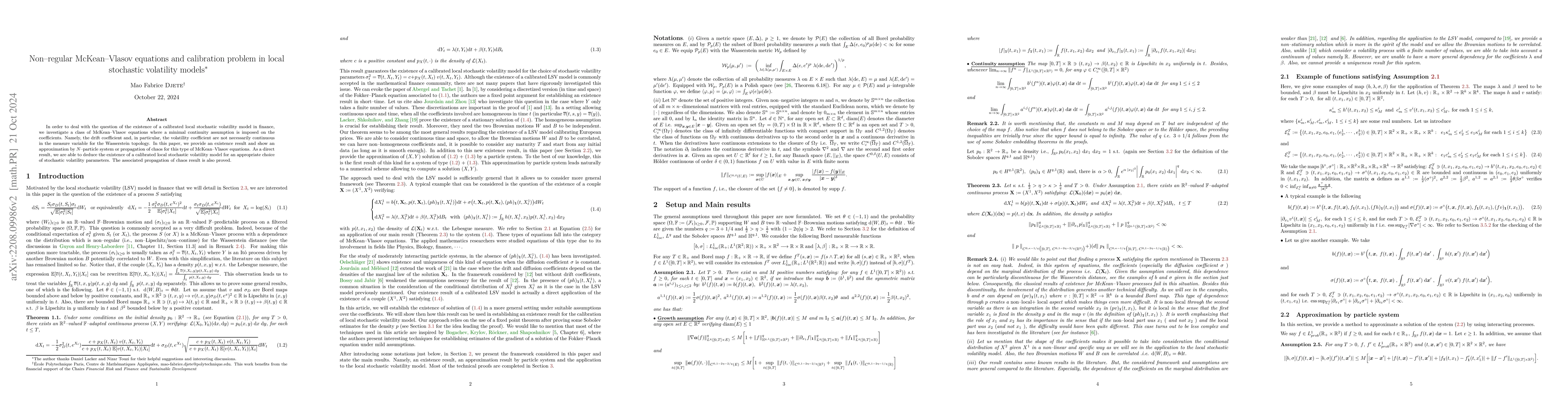 This paper investigates the existence of calibrated local stochastic volatility models in finance by examining non-regular McKean-Vlasov equations with minimal continuity assumptions on coefficients. The authors provide an existence result and demonstrate an approximation via an N-particle system, leading to the existence of a calibrated model for specific volatility parameters.