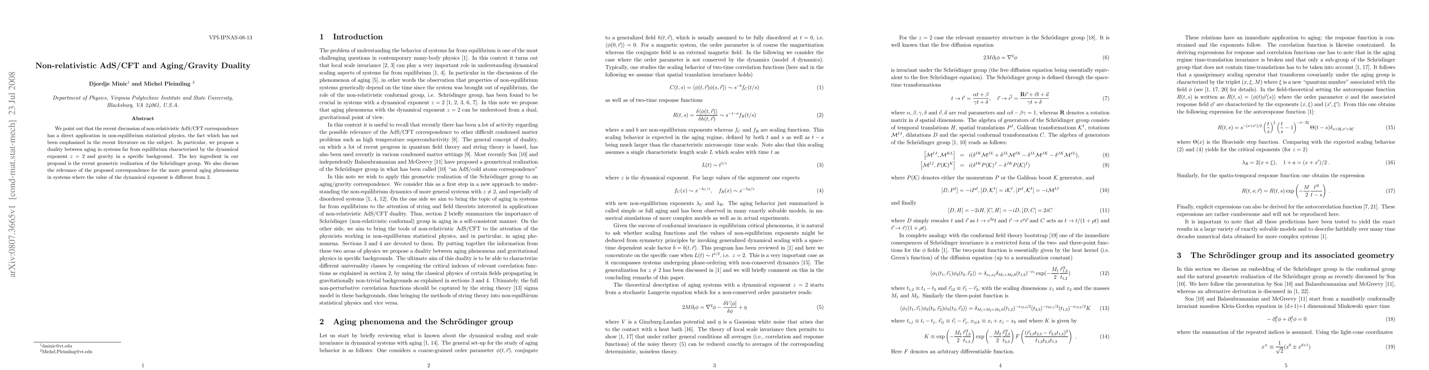 We point out that the recent discussion of non-relativistic AdS/CFT correspondence has a direct application in non-equilibrium statistical physics, the fact which has not been emphasized in the recent literature on the subject. In particular, we propose a duality between aging in systems far from equilibrium characterized by the dynamical exponent $z=2$ and gravity in a specific background. The key ingredient in our proposal is the recent geometric realization of the Schr\"{o}dinger group. We also discuss the relevance of the proposed correspondence for the more general aging phenomena in systems where the value of the dynamical exponent is different from 2.