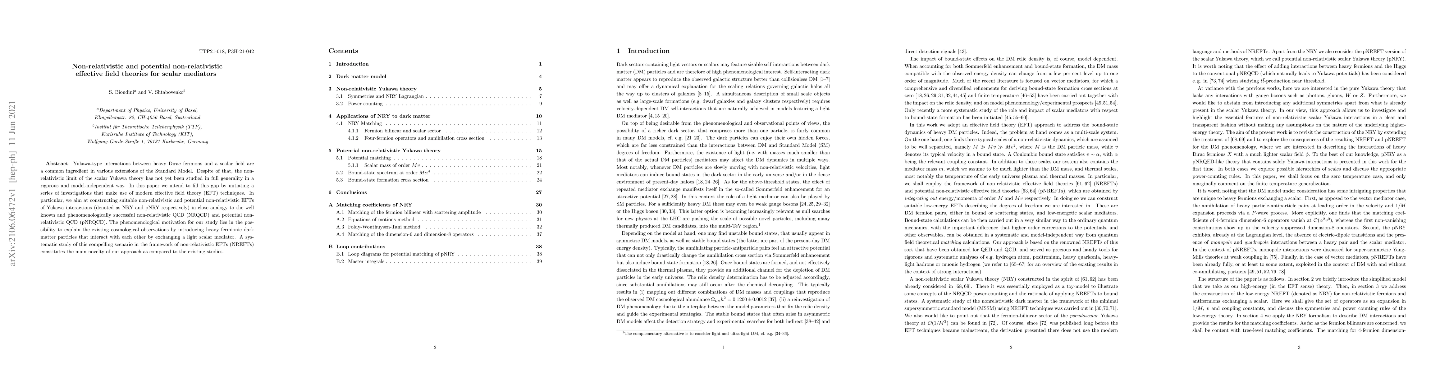 This paper constructs non-relativistic and potential non-relativistic effective field theories for Yukawa interactions between heavy fermions and a scalar mediator, analogous to NRQCD and pNRQCD. The study aims to explain cosmological observations using heavy fermionic dark matter particles interacting via a light scalar mediator.