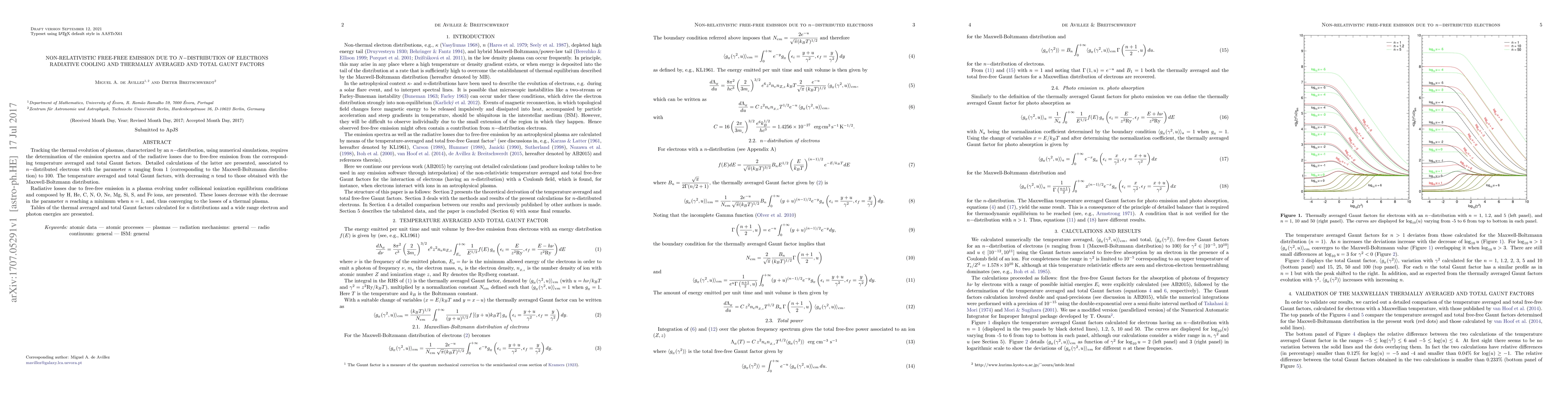 This paper presents detailed calculations of temperature averaged and total Gaunt factors for plasmas characterized by an n-distribution of electrons, ranging from n=1 (Maxwell-Boltzmann distribution) to n=100. It shows that radiative losses due to free-free emission decrease with decreasing n, converging to those of a thermal plasma when n=1.