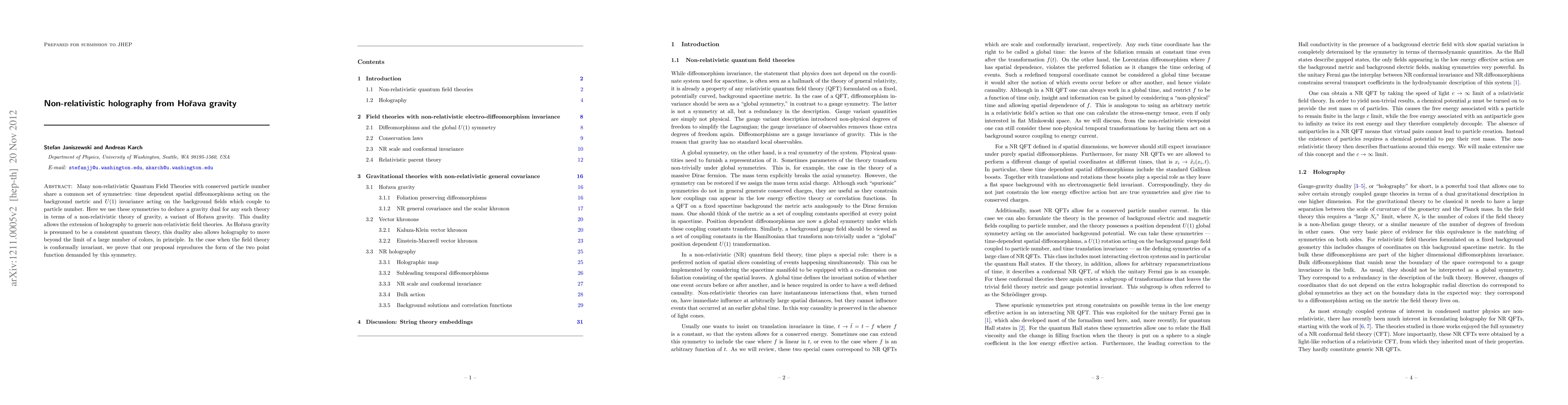 Many non-relativistic Quantum Field Theories with conserved particle number share a common set of symmetries: time dependent spatial diffeomorphisms acting on the background metric and U(1) invariance acting on the background fields which couple to particle number. Here we use these symmetries to deduce a gravity dual for any such theory in terms of a non-relativistic theory of gravity, a variant of Horava gravity. This duality allows the extension of holography to generic non-relativistic field theories. As Horava gravity is presumed to be a consistent quantum theory, this duality also allows holography to move beyond the limit of a large number of colors, in principle. In the case when the field theory is conformally invariant, we prove that our proposal reproduces the form of the two point function demanded by this symmetry.