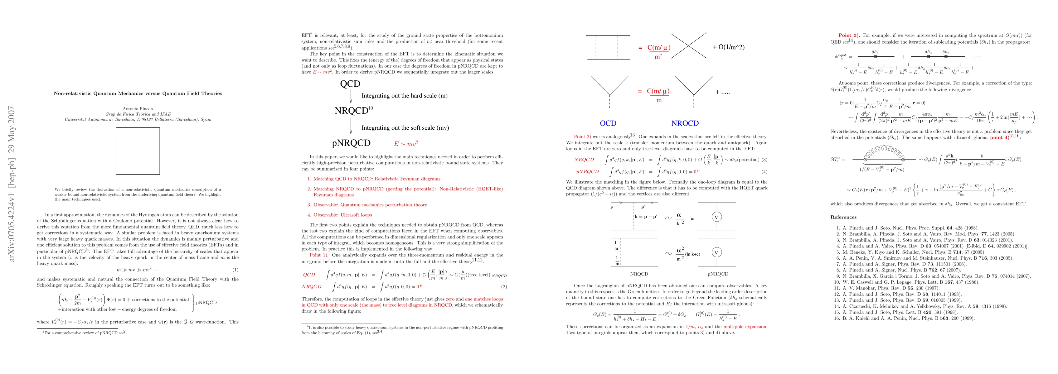 Summary: This paper reviews the derivation of non-relativistic quantum mechanics from quantum field theory for weakly bound systems, emphasizing key techniques used in the transition.