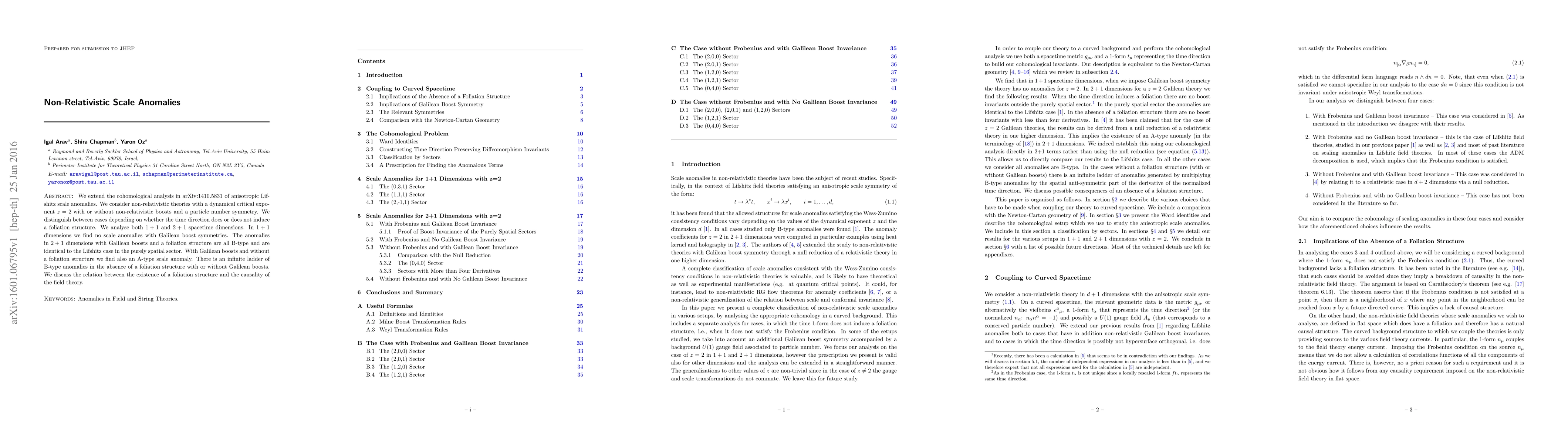 We extend the cohomological analysis in arXiv:1410.5831 of anisotropic Lifshitz scale anomalies. We consider non-relativistic theories with a dynamical critical exponent $z=2$ with or without non-relativistic boosts and a particle number symmetry. We distinguish between cases depending on whether the time direction does or does not induce a foliation structure. We analyse both $1+1$ and $2+1$ spacetime dimensions. In $1+1$ dimensions we find no scale anomalies with Galilean boost symmetries. The anomalies in $2+1$ dimensions with Galilean boosts and a foliation structure are all B-type and are identical to the Lifshitz case in the purely spatial sector. With Galilean boosts and without a foliation structure we find also an A-type scale anomaly. There is an infinite ladder of B-type anomalies in the absence of a foliation structure with or without Galilean boosts. We discuss the relation between the existence of a foliation structure and the causality of the field theory.