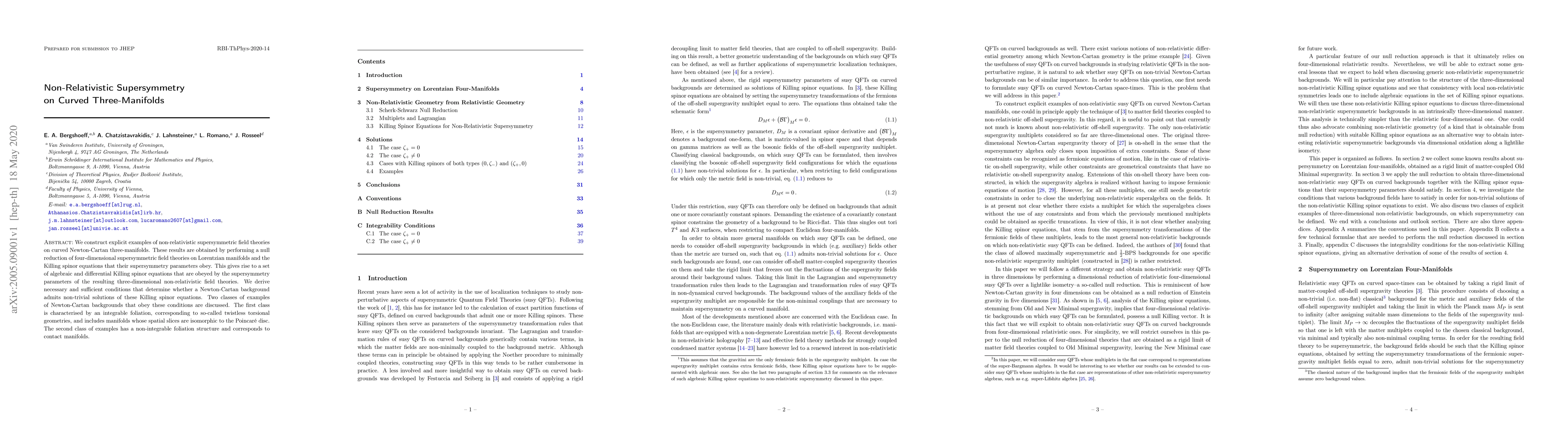 We construct explicit examples of non-relativistic supersymmetric field theories on curved Newton-Cartan three-manifolds. These results are obtained by performing a null reduction of four-dimensional supersymmetric field theories on Lorentzian manifolds and the Killing spinor equations that their supersymmetry parameters obey. This gives rise to a set of algebraic and differential Killing spinor equations that are obeyed by the supersymmetry parameters of the resulting three-dimensional non-relativistic field theories. We derive necessary and sufficient conditions that determine whether a Newton-Cartan background admits non-trivial solutions of these Killing spinor equations. Two classes of examples of Newton-Cartan backgrounds that obey these conditions are discussed. The first class is characterised by an integrable foliation, corresponding to so-called twistless torsional geometries, and includes manifolds whose spatial slices are isomorphic to the Poincar\'e disc. The second class of examples has a non-integrable foliation structure and corresponds to contact manifolds.
